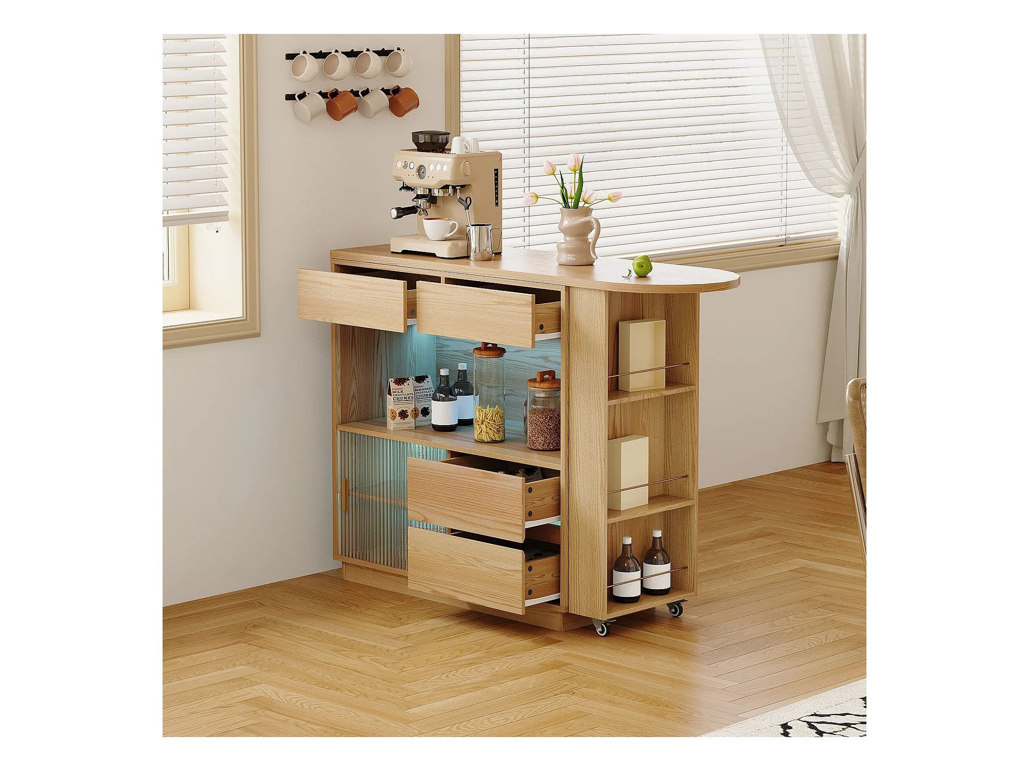 Bureau L-forme avec rangement, plateau pivotant et éclairage LED, MDF, bois naturel (120.7x45x94.8 cm)