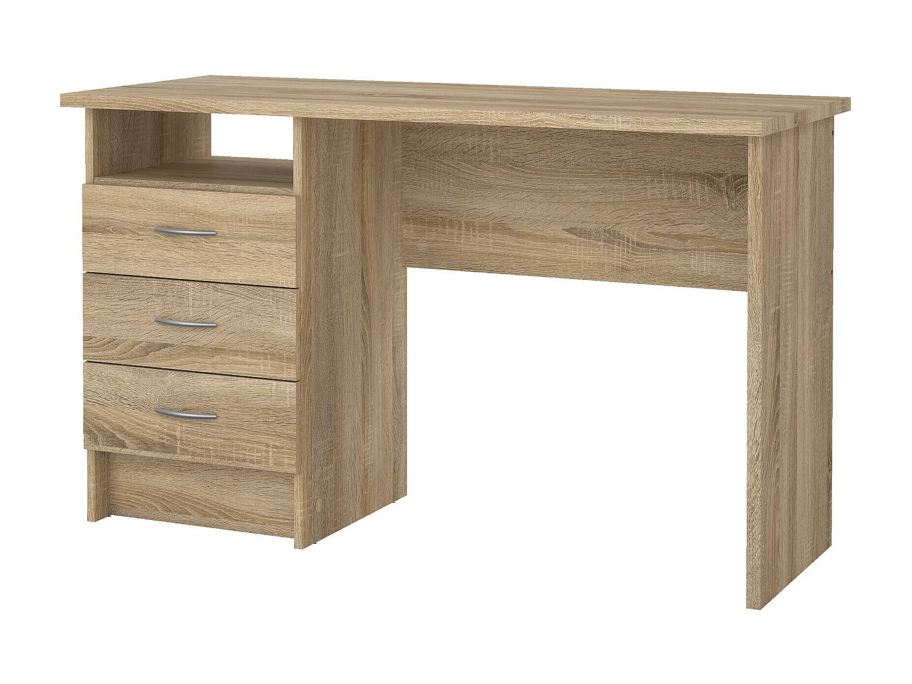 Bureau linéaire à trois tiroirs, couleur chêne, Dimensions 120 x 72 x 48 cm