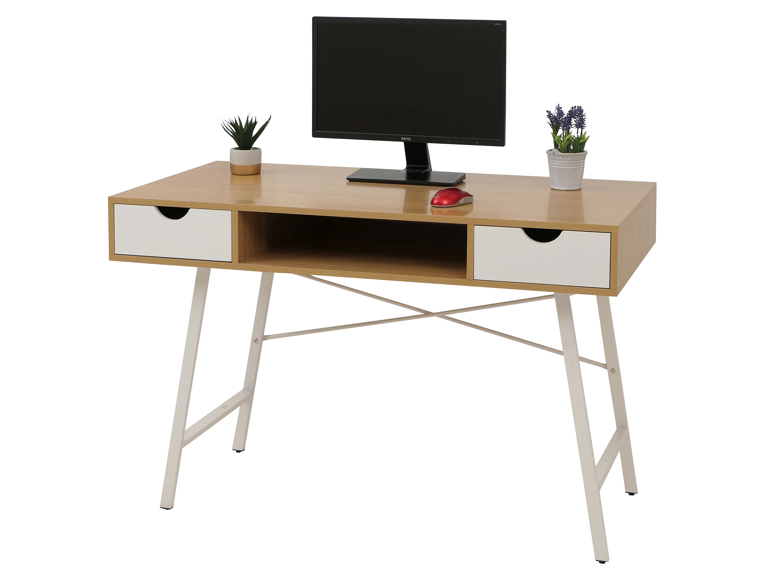 Bureau MCW-E92, brun naturel, blanc