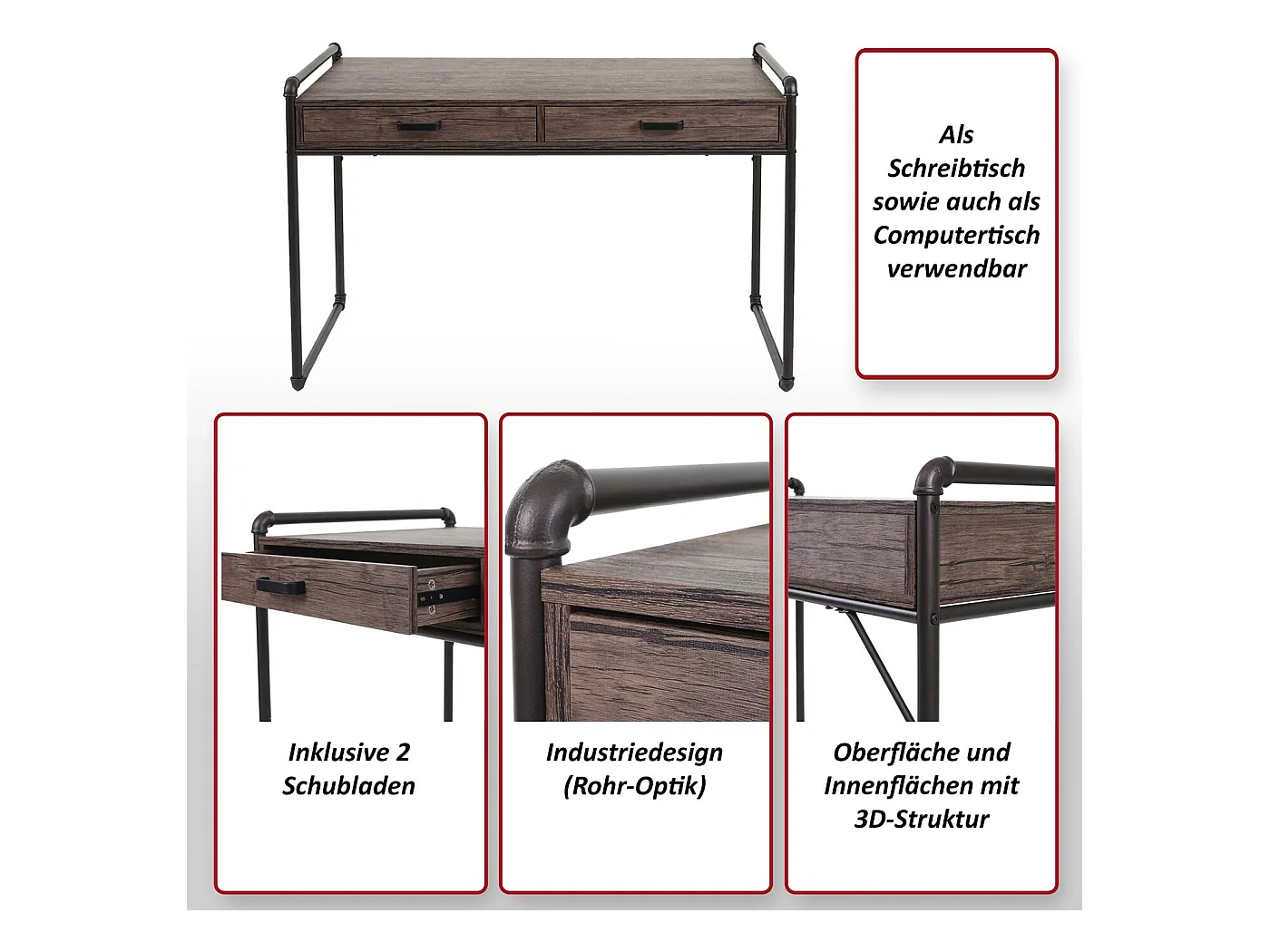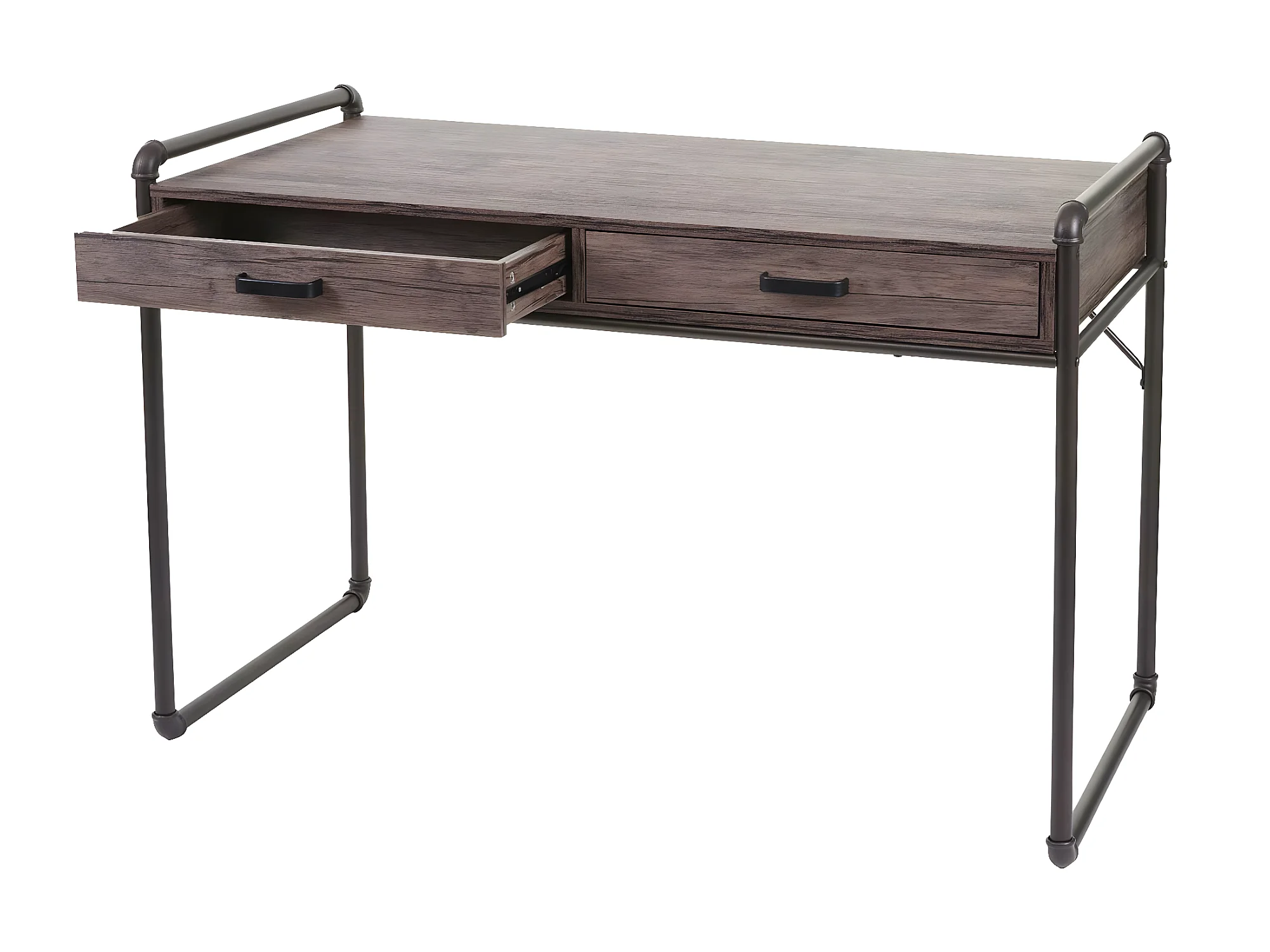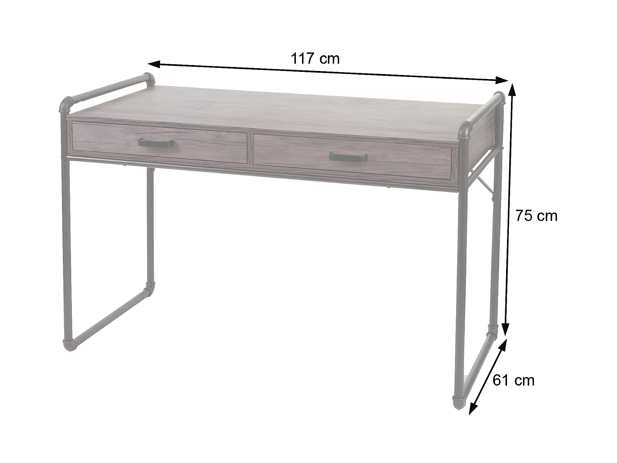 Bureau chêne fumé 120x50x75 cm métal et bois d'ingénierie