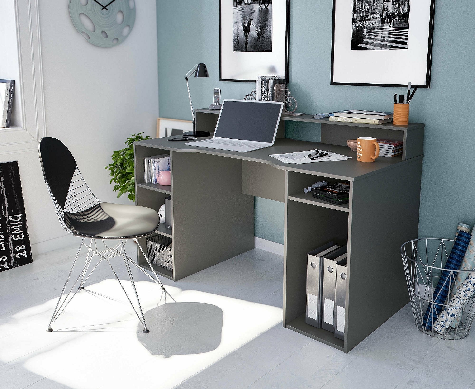 Bureau Dlucum, Bureau de jeu multifonction moderne, Table d'étude pour PC et support CD, Table d'étude avec étagères, 136x67h88 cm, Anthracite