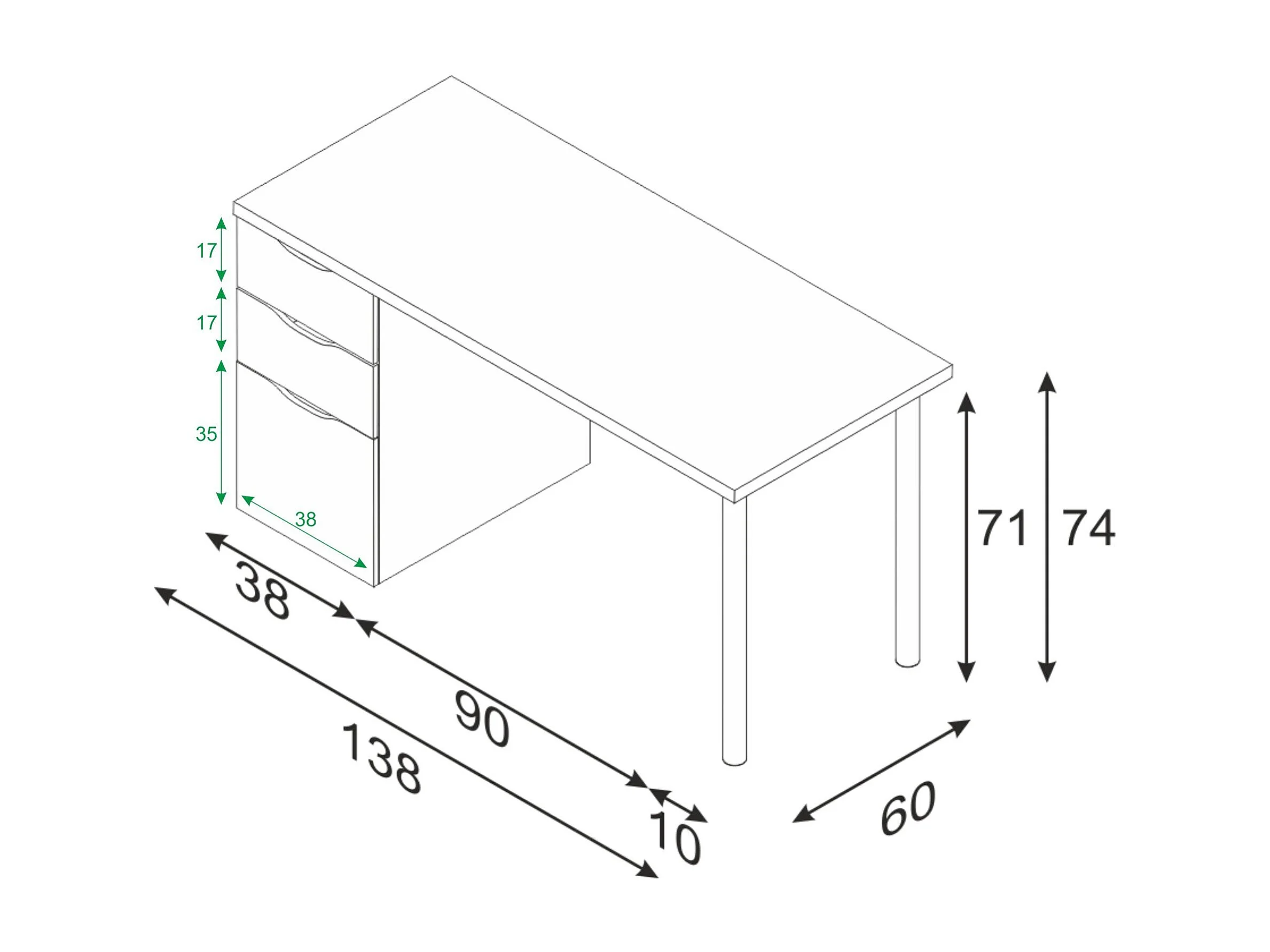 Bureau Philadelphia, Bureau réversible multifonctionnel, Table d'étude avec commode avec 2 tiroirs et 1 porte, 138x60h74 cm, Blanc