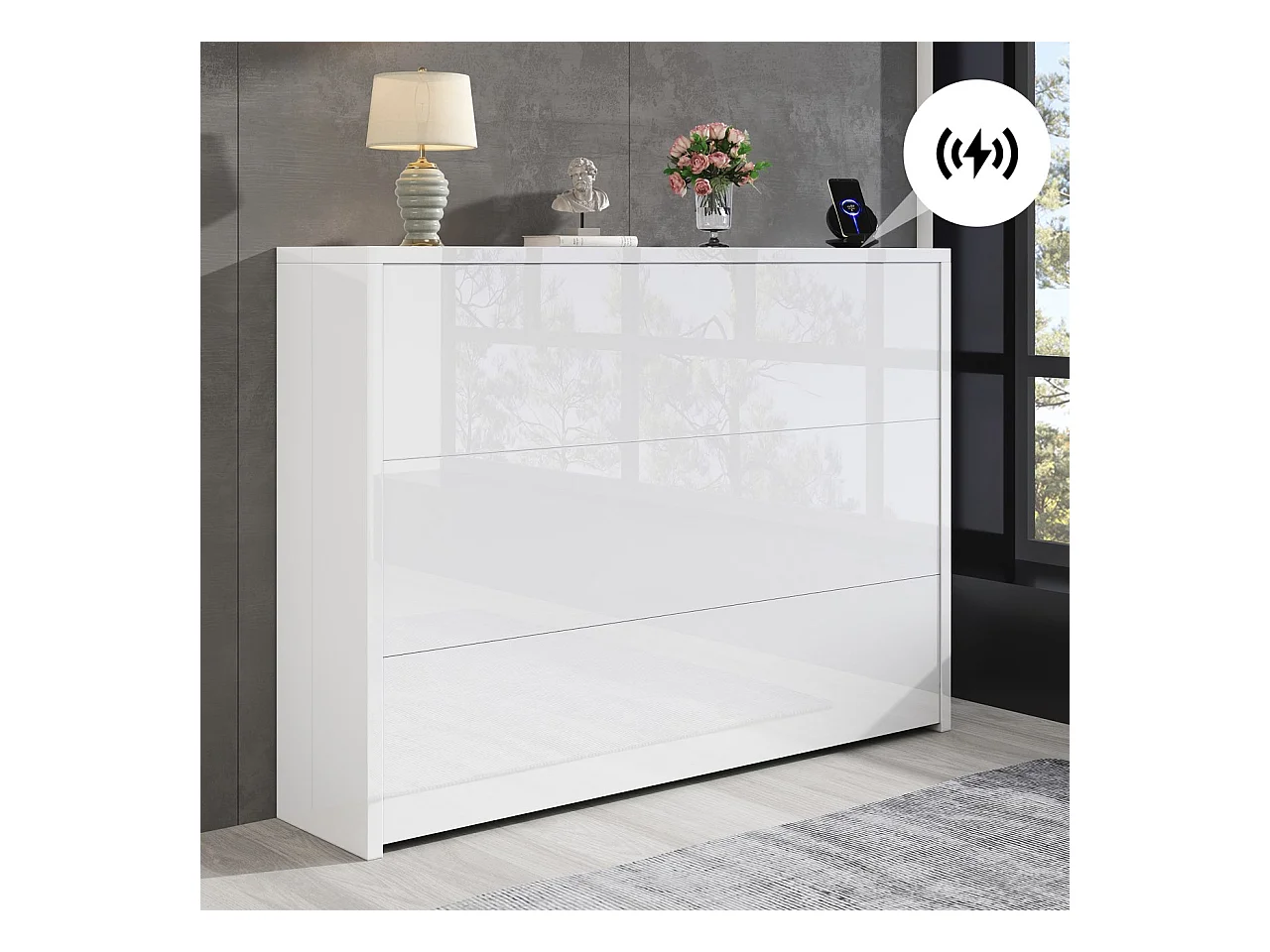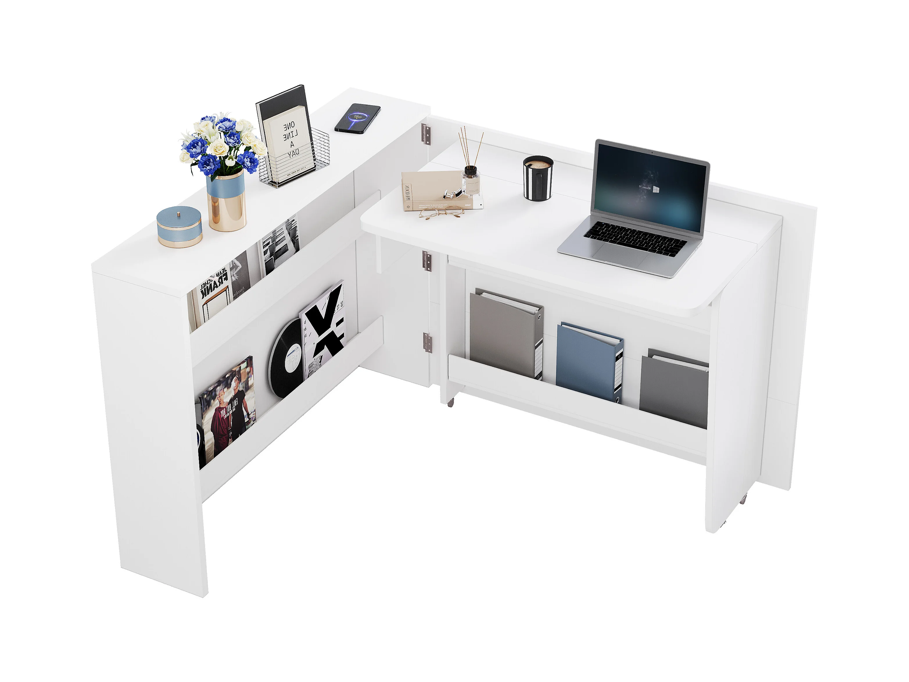 Bureau pliable avec chargeur sans fil - 115 x 51 x 93 cm - buffet et bureau 2 en 1 - aggloméré - blanc
