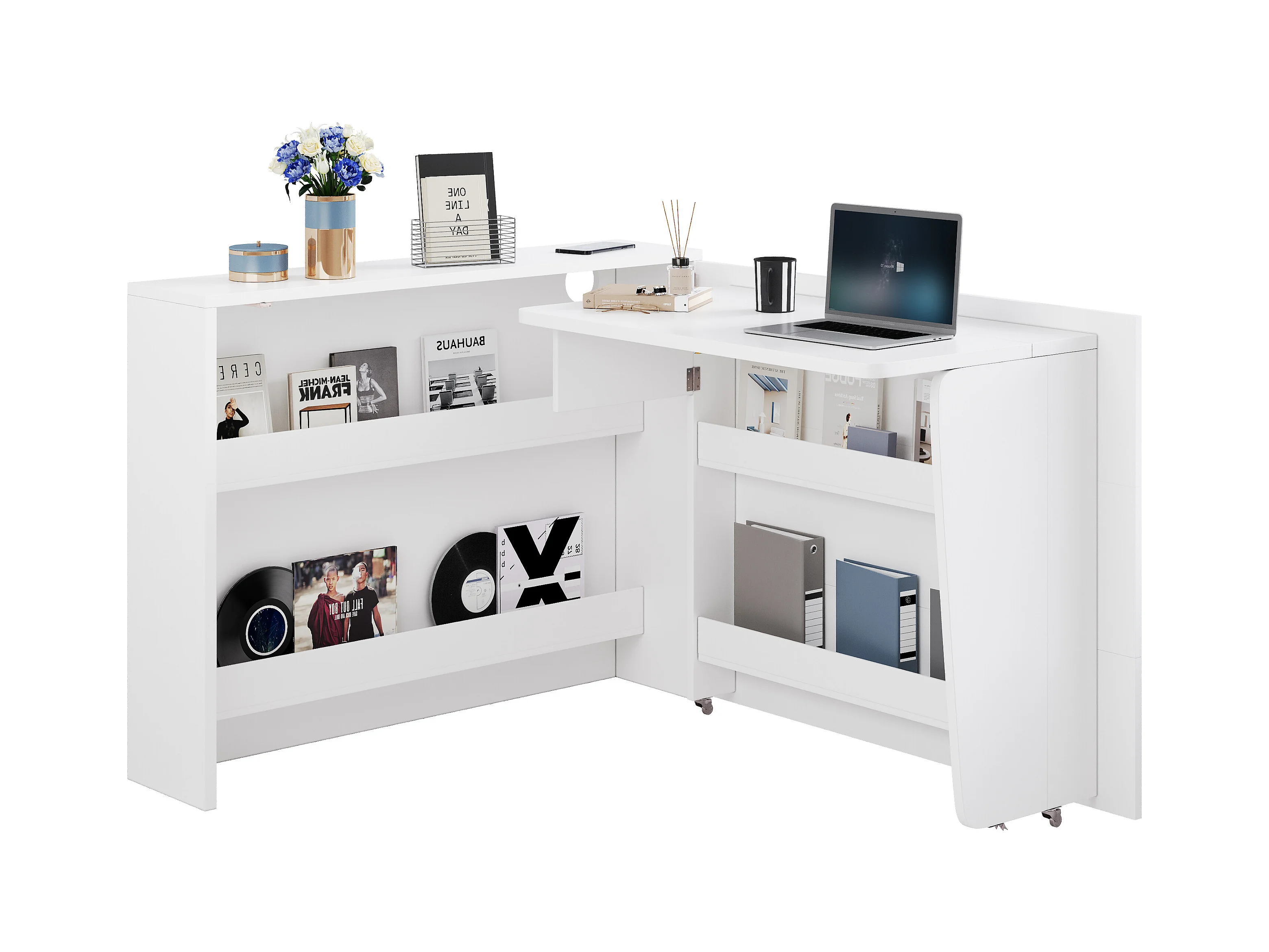 Bureau et buffet 2 en 1 - 120 x 40 x 74.5 cm - rotatif à 360°- avec 3 portes + 1 tiroir - aggloméré - blanc