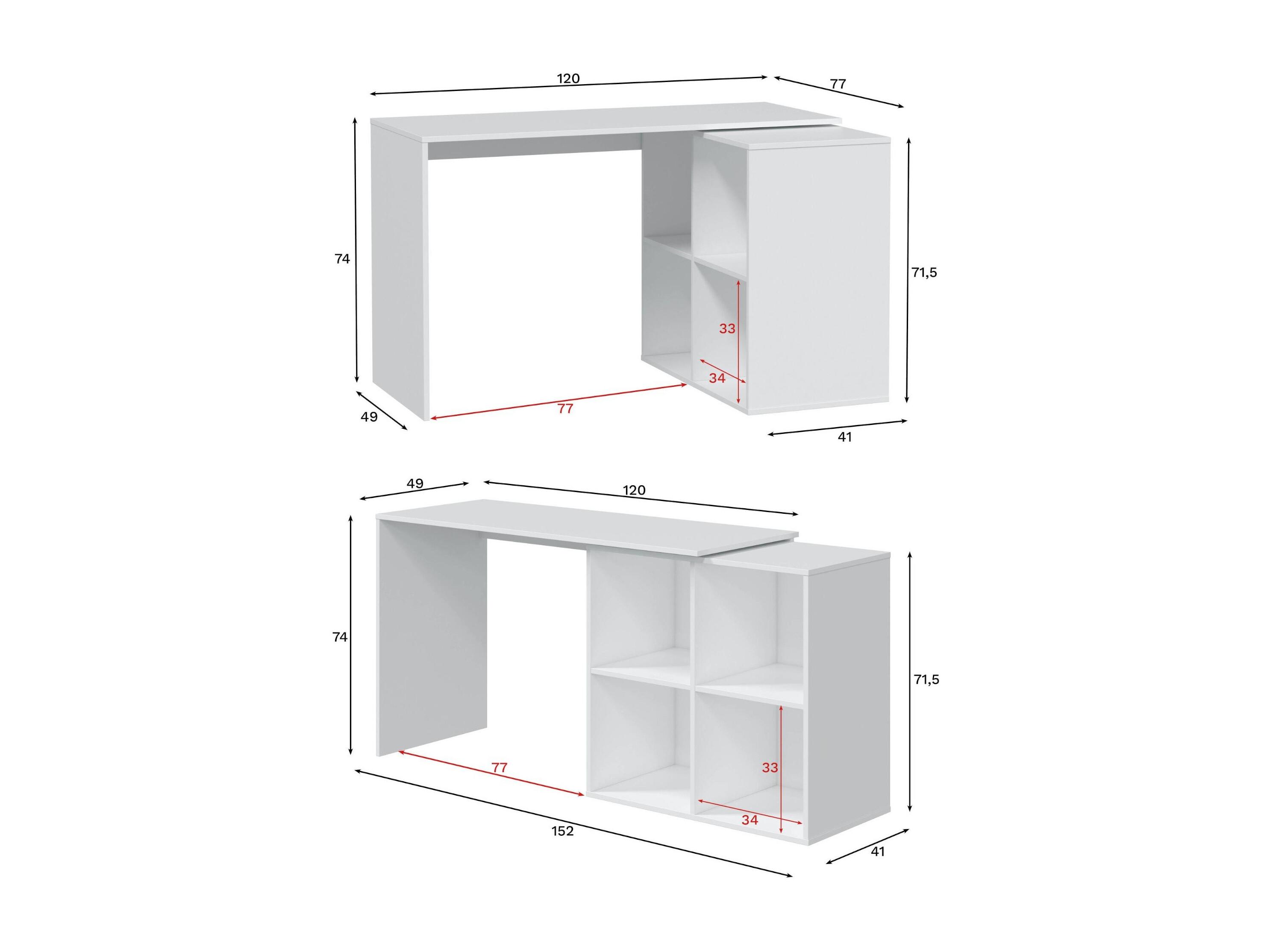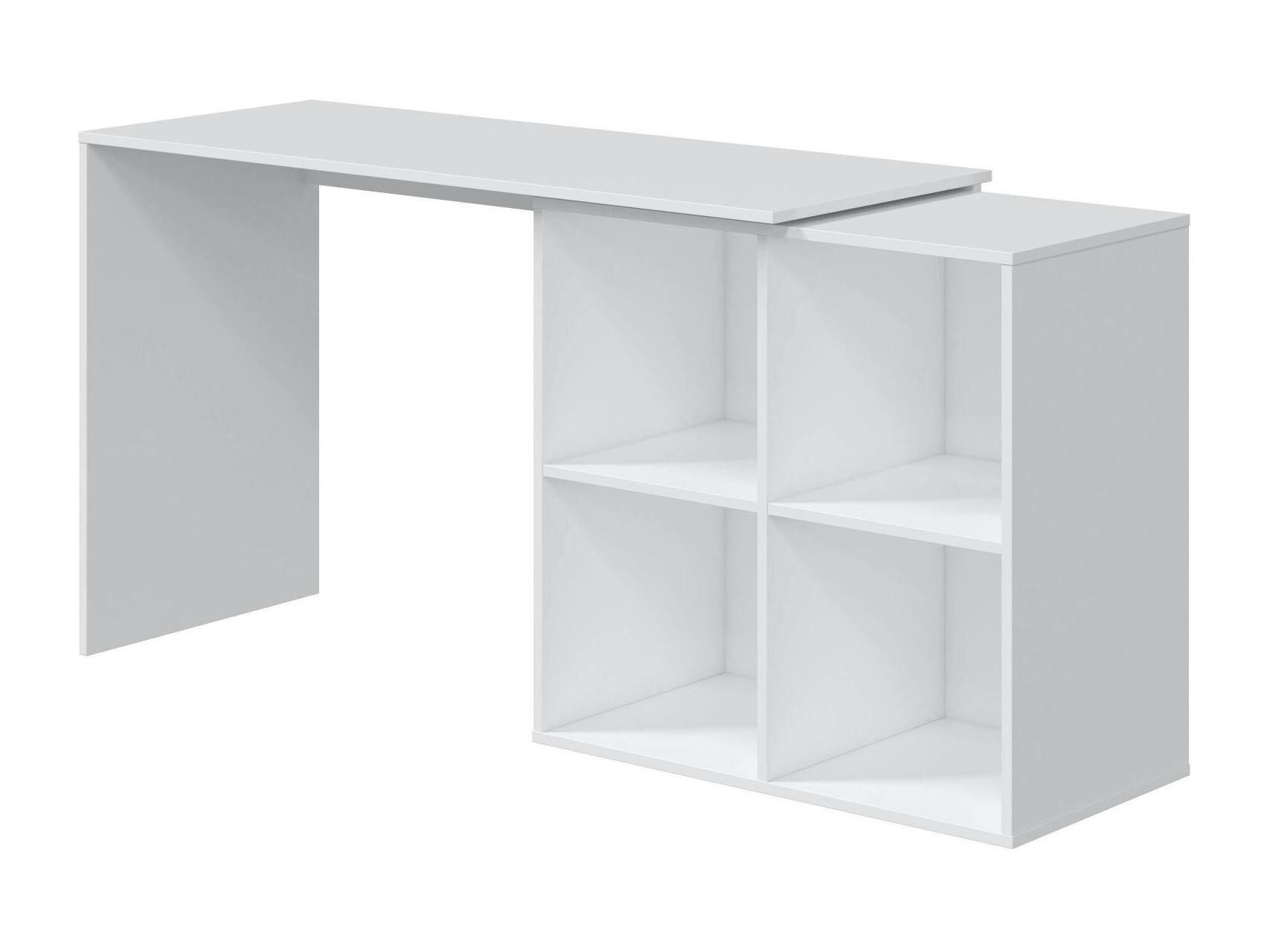 Bureau Divkovi, Bureau multifonction modulaire avec étagère, Table d'étude ou de bureau multi-positions avec montage en coin, 152x49h74 cm, Blanc