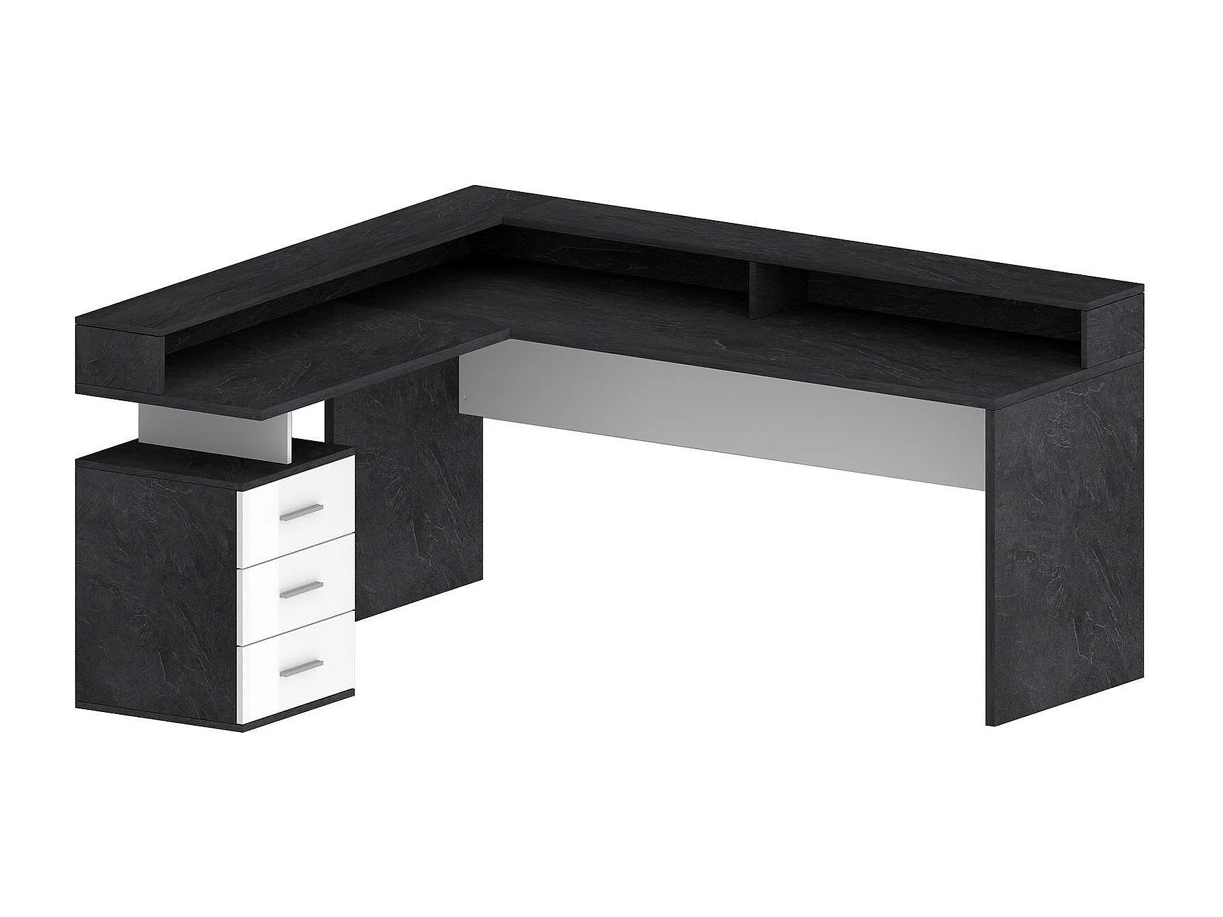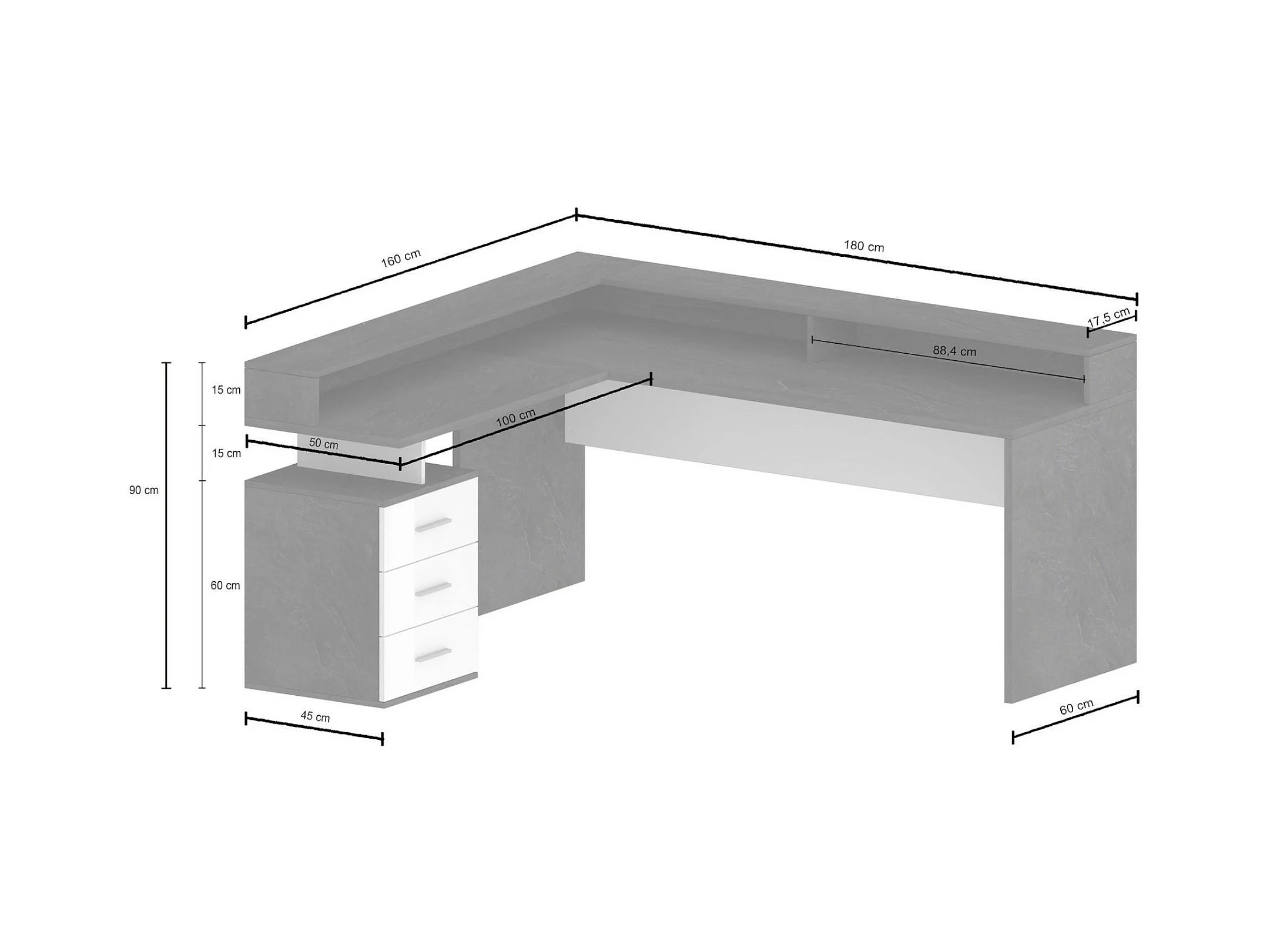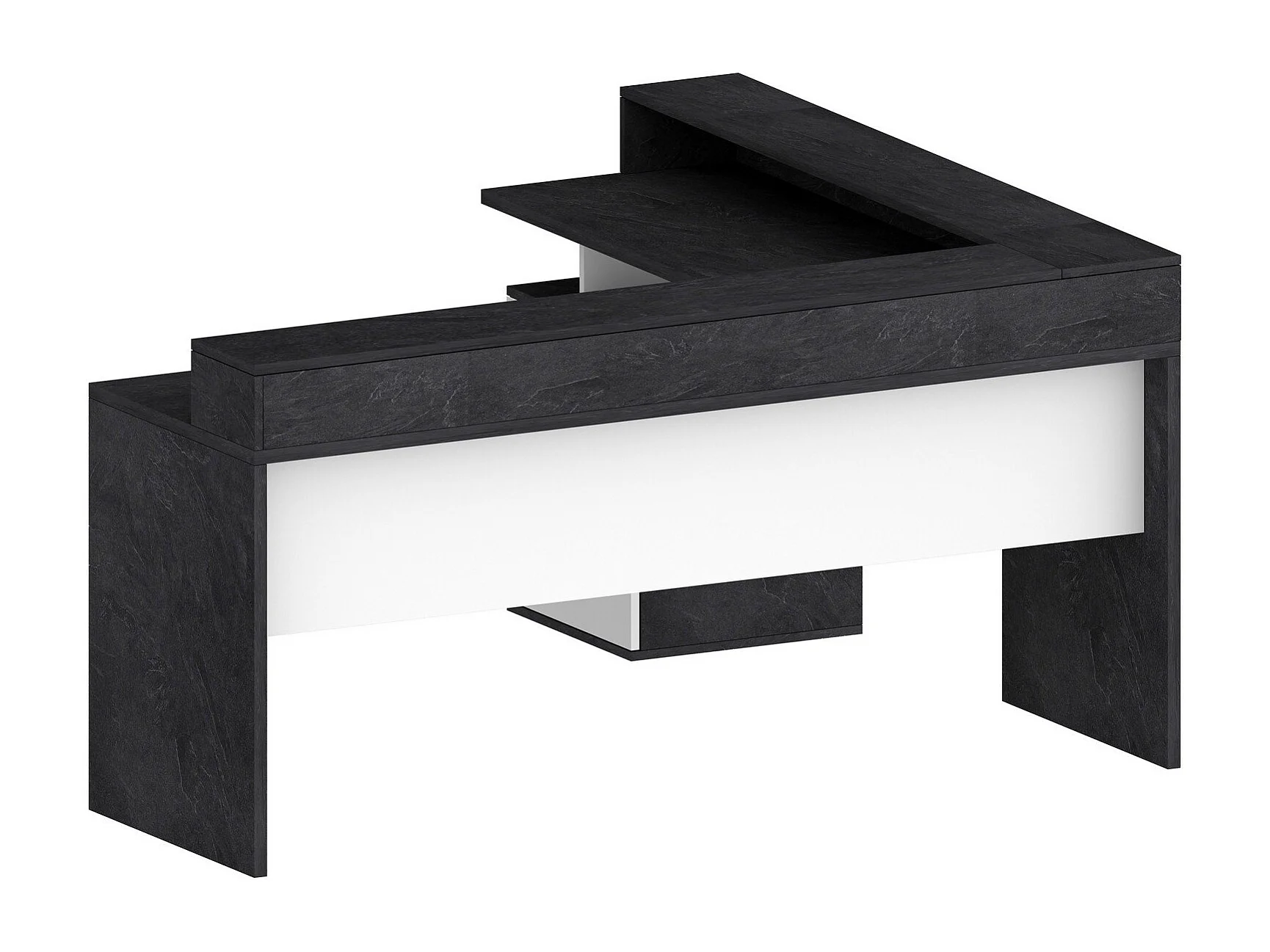 Bureau Salomone, Bureau d'angle avec plateau, Bureau polyvalent, 180x90h160 cm, Blanc et Ardoise