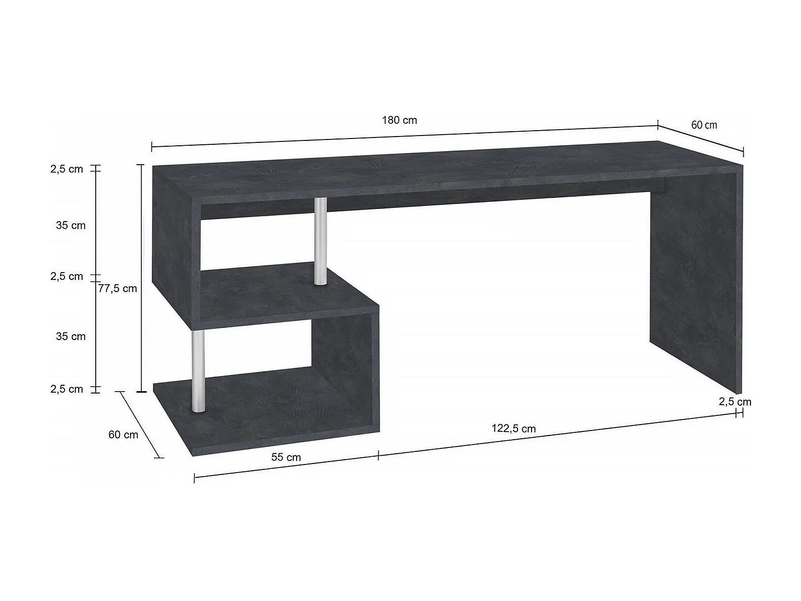 Bureau Samuel, Bureau PC Linéaire, Table de bureau polyvalente, Bureau gain de place multi-positions, 100% Made in Italy, 180x60h78 cm, Ardoise