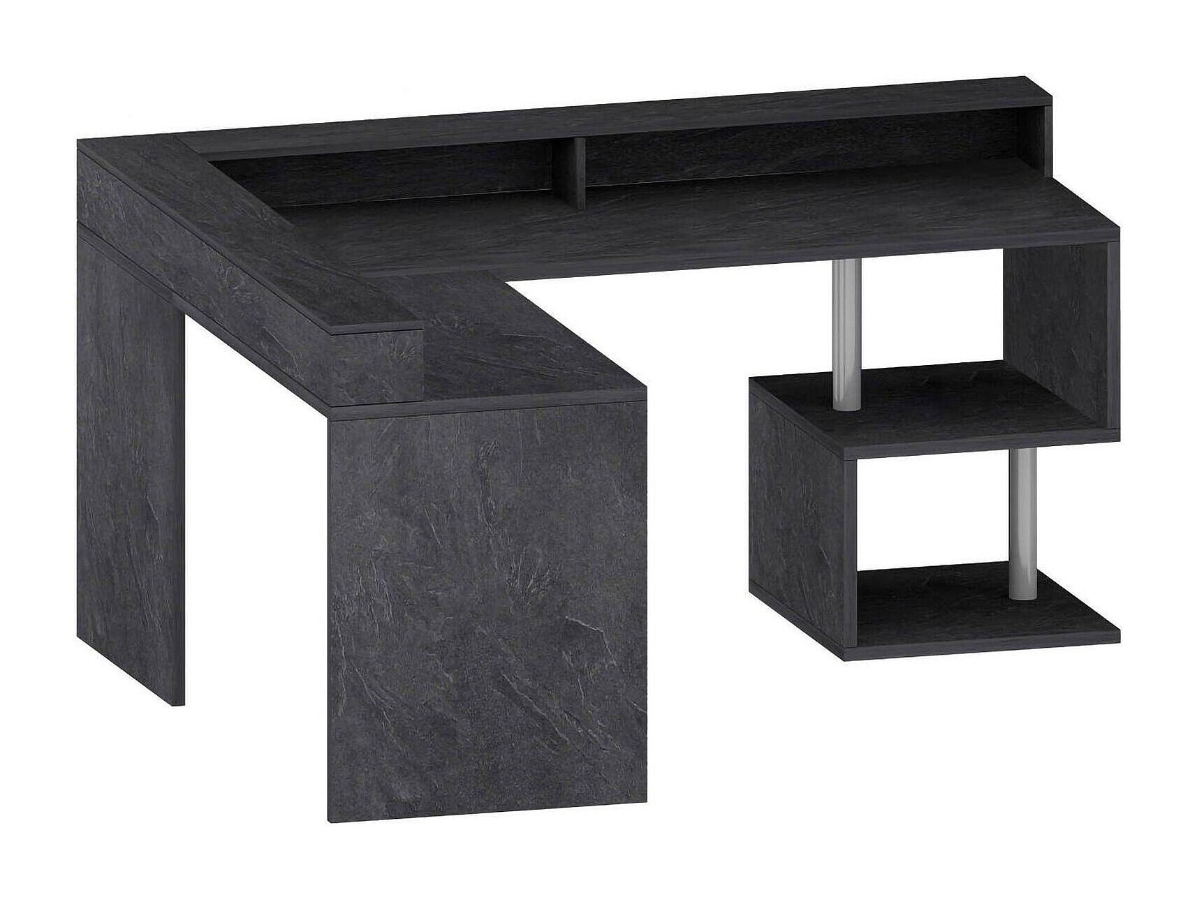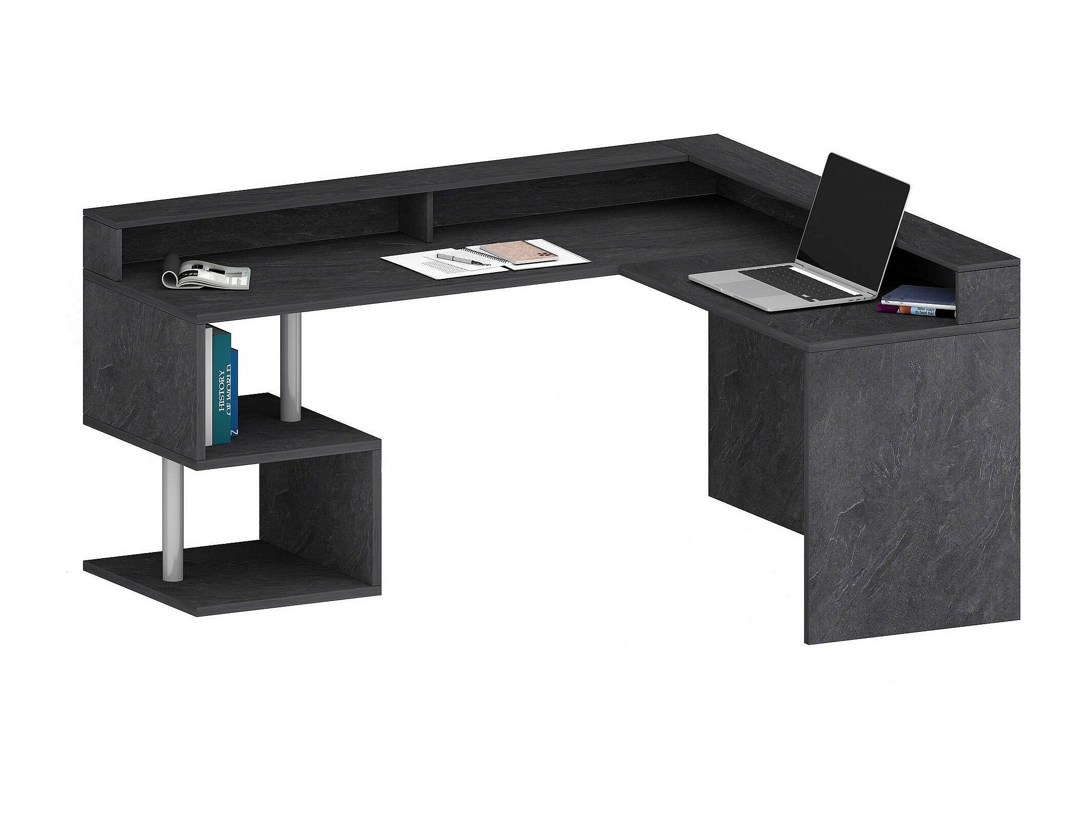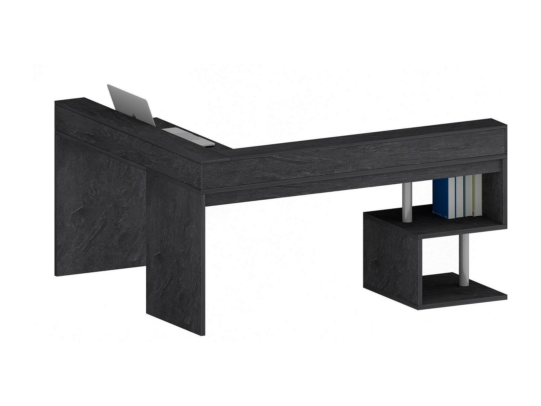 Bureau Sansone, Bureau d'angle avec étagères de rangement, Bureau polyvalent avec plateau, 180x60h93 cm, Ardoise