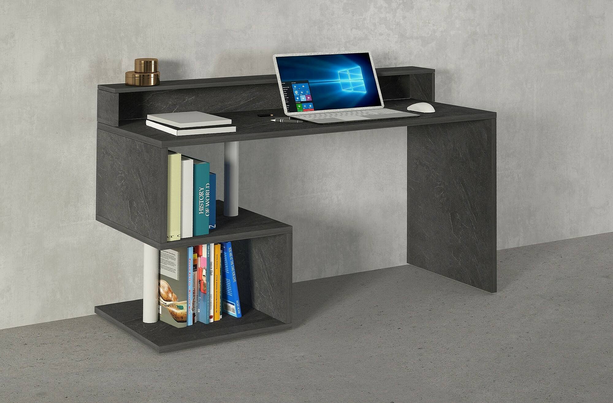 Bureau Silvestro, Bureau linéaire avec étagères de rangement, Bureau polyvalent avec plateau, 140x60h93 cm, Ardoise