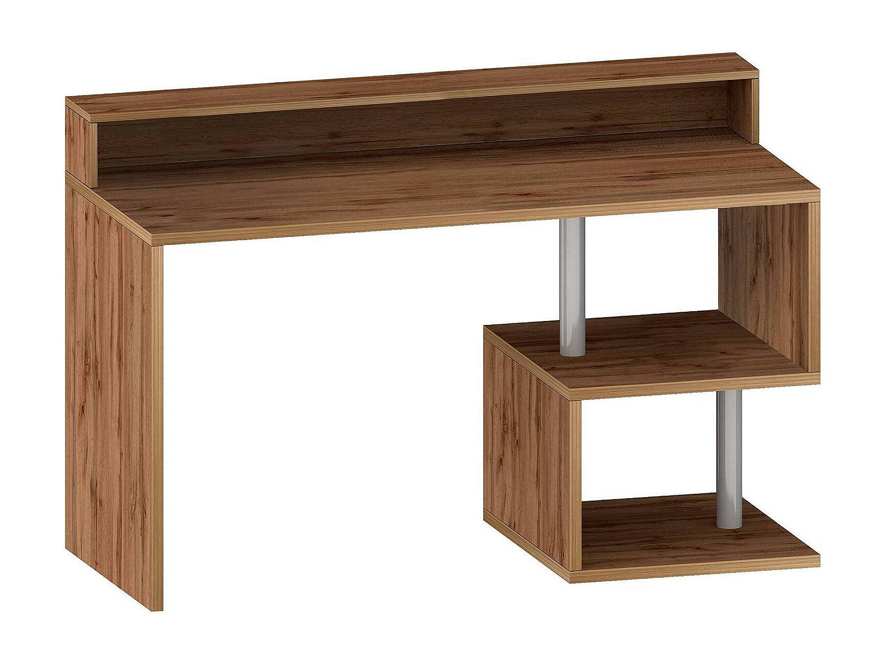 Bureau Silvestro, Bureau linéaire avec étagères de rangement, Bureau polyvalent avec plateau, 140x60h93 cm, Chêne