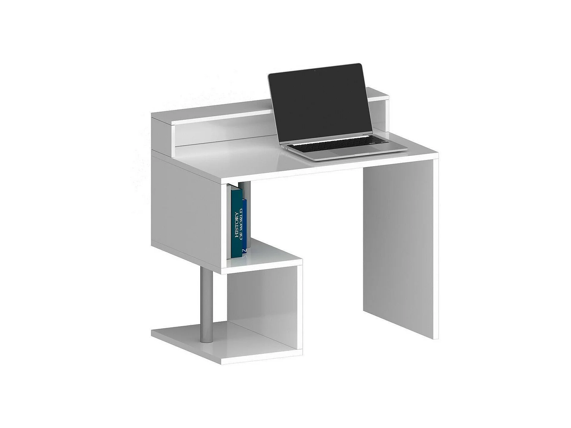 Bureau Silvio, Bureau linéaire avec étagères de rangement, Bureau polyvalent avec plateau, 100x50h93 cm, Blanc