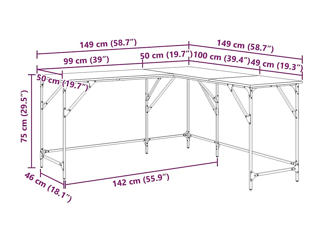 Bureau sonoma gris 149x149x75 cm bois d'ingénierie