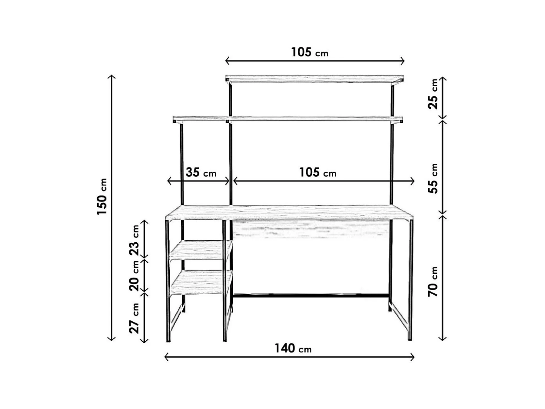 Bureau L120cm avec 4 étagères style industriel