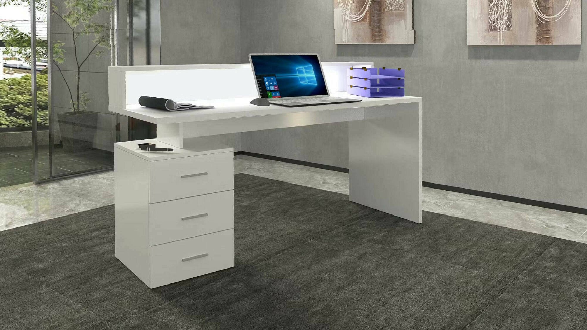 Bureau Dbuttar, Bureau moderne, Table d'étude avec commode avec 2 tiroirs et 1 porte, 138x60h74 cm, Blanc