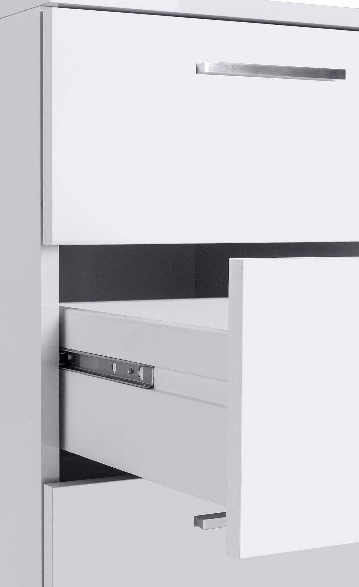 Armoire roulante avec tiroirs MOSS blanc bois de pin solide