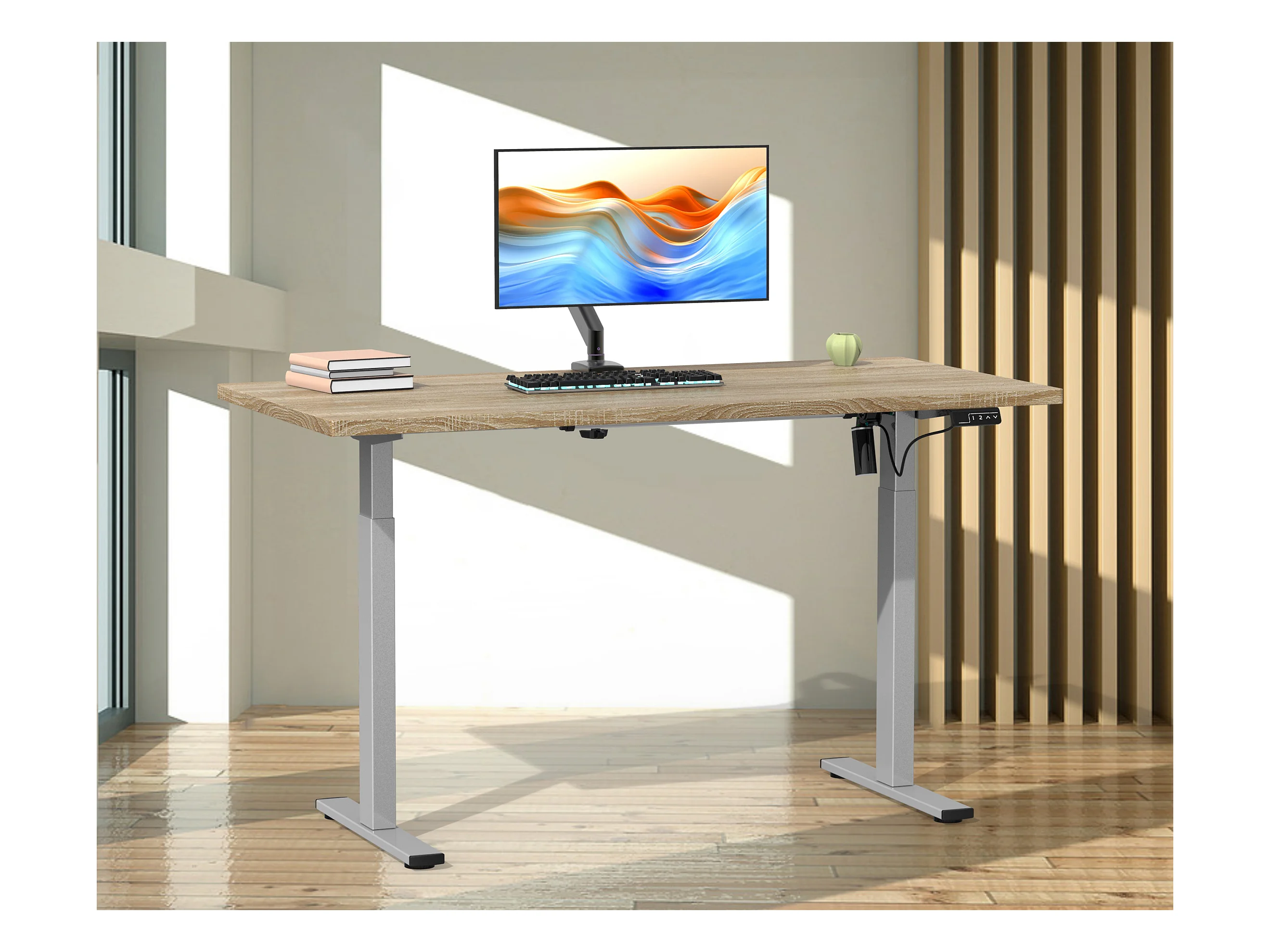 Desk Lona Silver / Honey oak H. 71-120 x W. 140 x D. 80 cm
