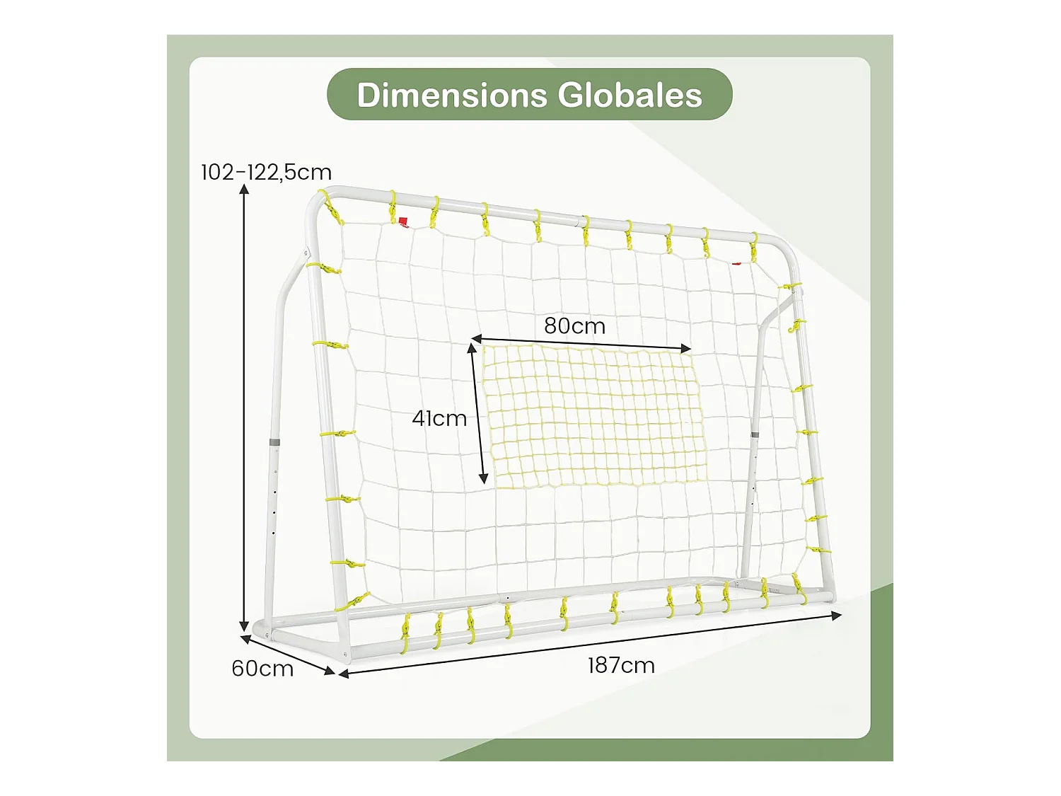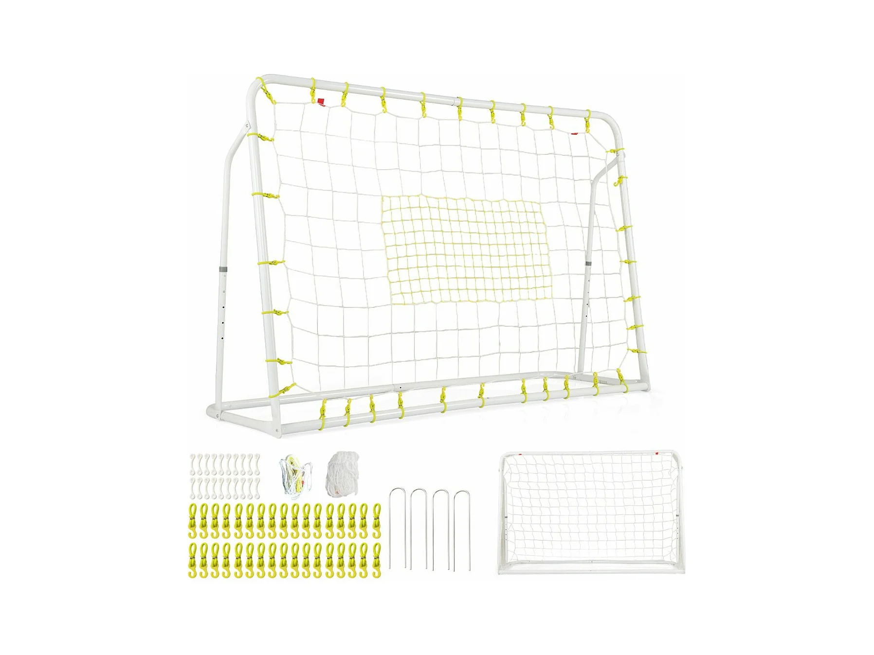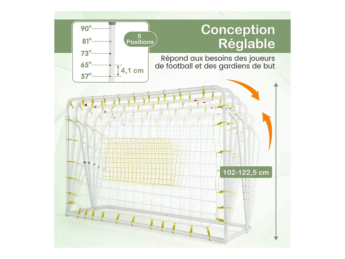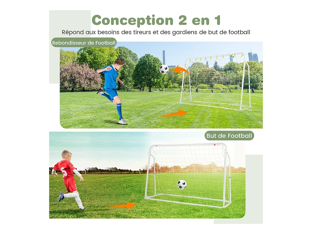 But de Football Exterieur 2 en 1 à 187 x 122,5 cm, Cage de Foot avec Filet de Rebond Angle Réglable Cadre en Métal Robuste, pour +6 Ans (Blanc)