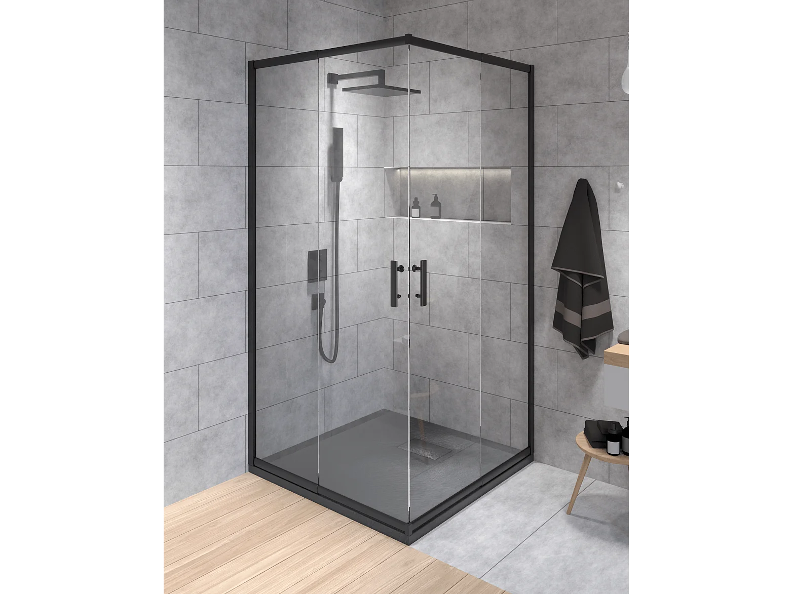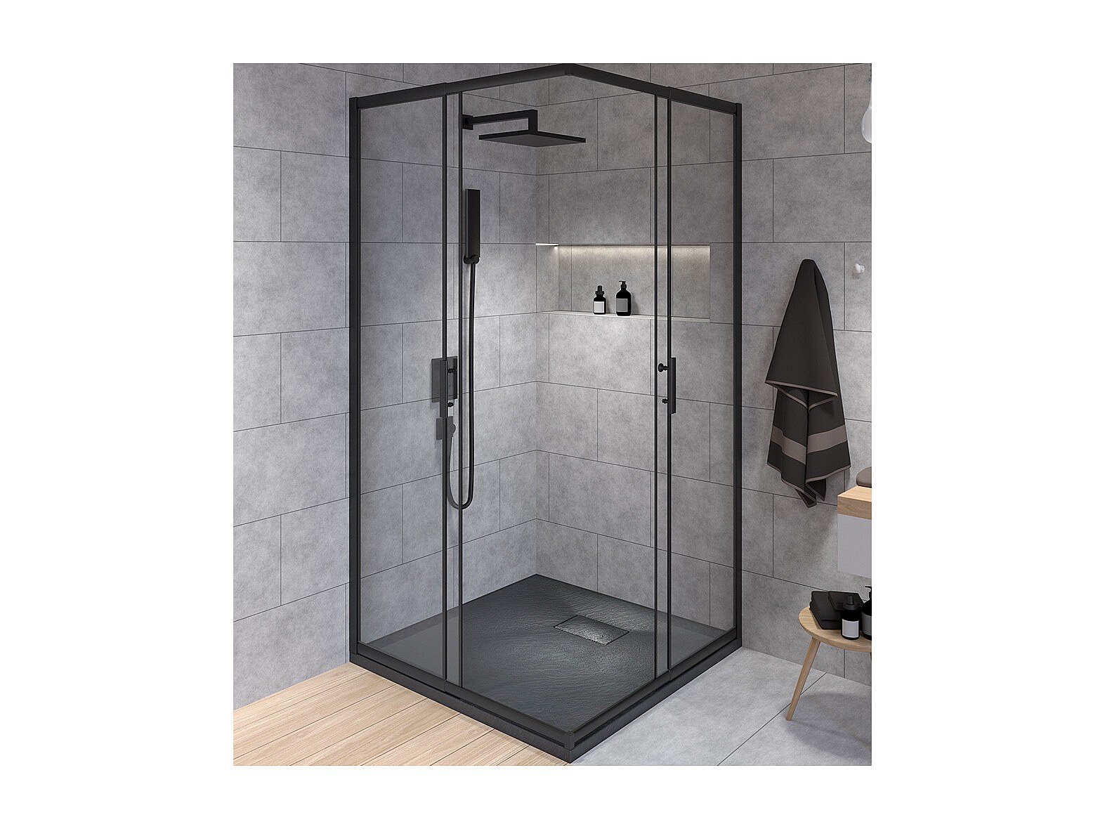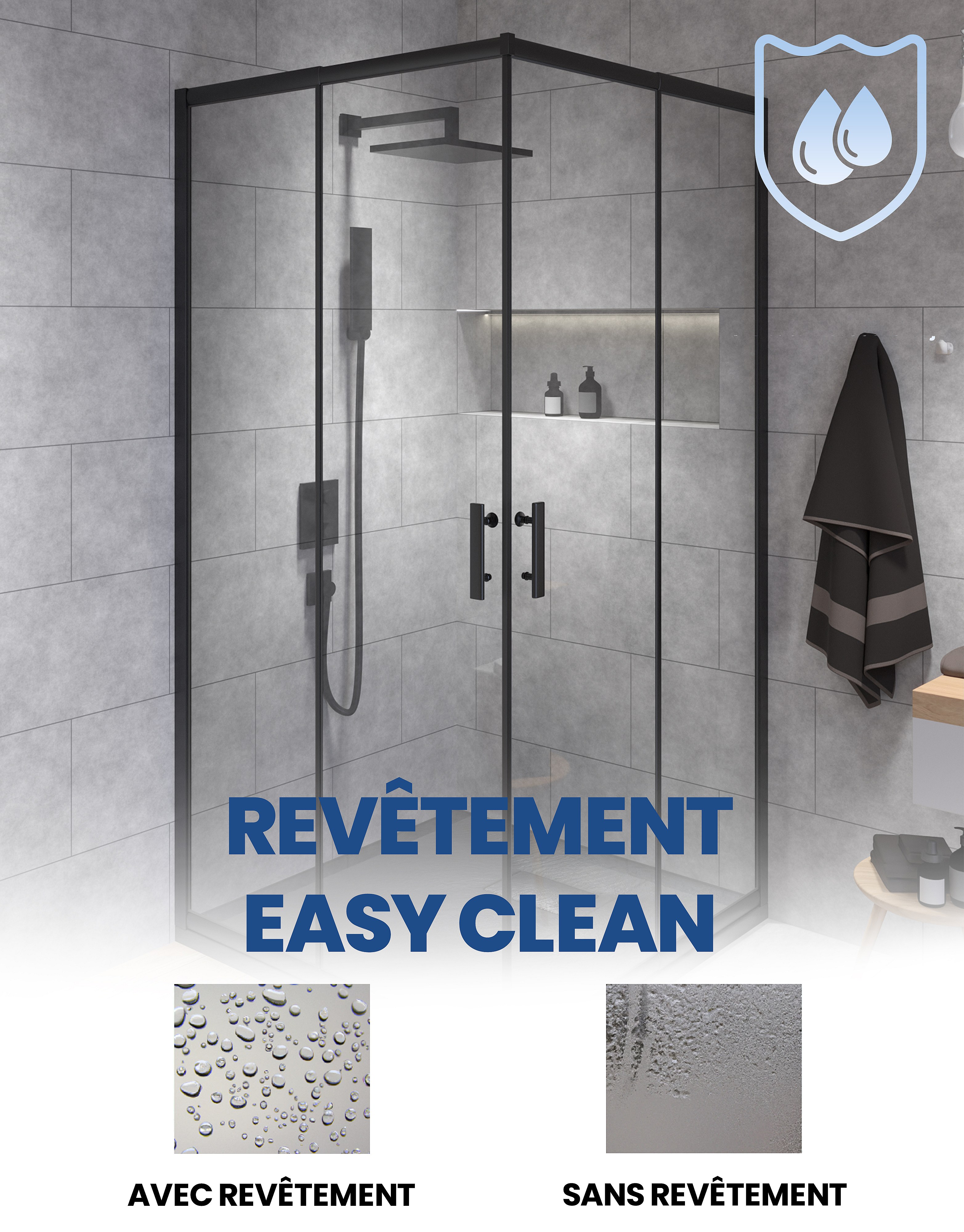 Cabine de douche carrée HELA Noir 90x90 190 cm Nano-Verre Transparent Trempé