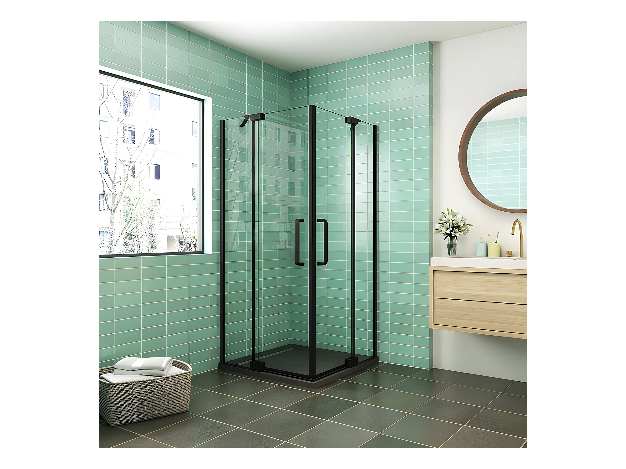 AICA Cabine de douche 90x90x200cm accès d'angle - Noir Mat , porte de douche coulissante, en 6mm verre anticalcaire, cabine de douche noire
