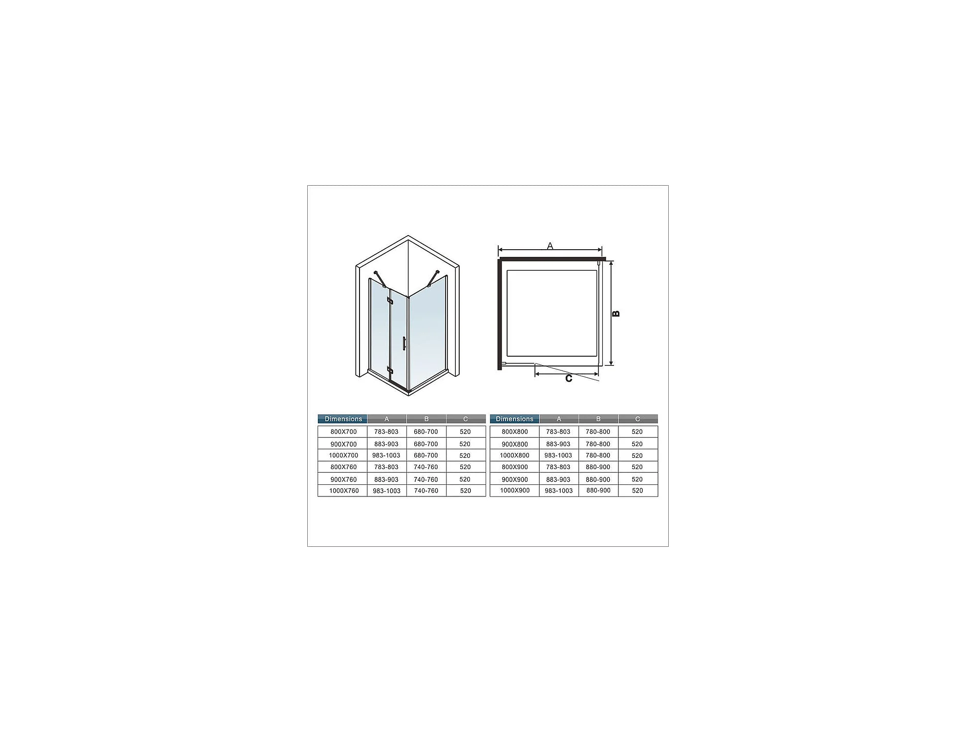 Cabine de douche pliante 80x90x185cm, porte de douche pliante 80cm avec une paroi de douche fixe, verre de sécurité et transparent