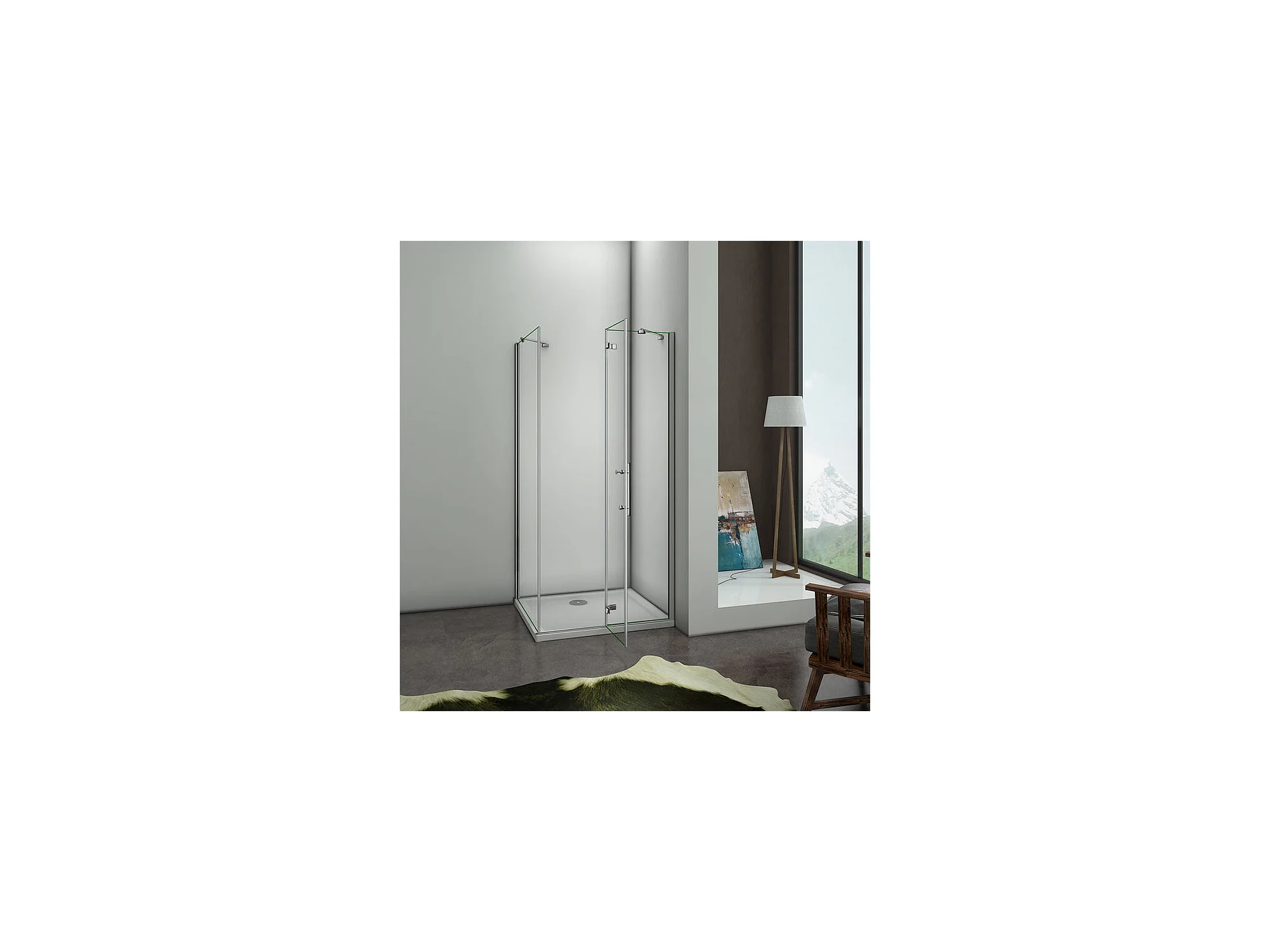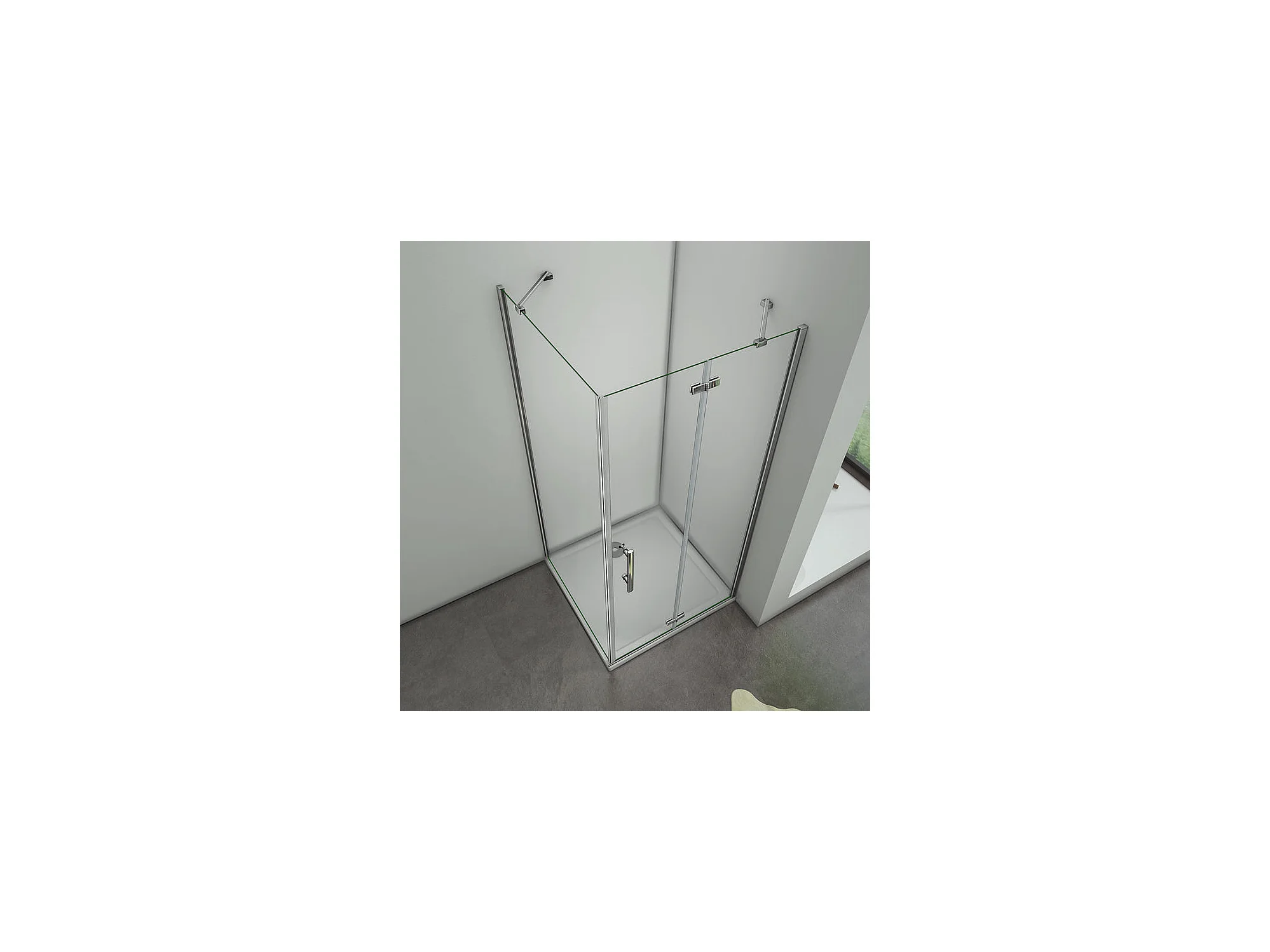 Cabine de douche pivotante et pliante 80x90x185cm en 6mm verre anticalcaire, porte de douche + paroi latérale avec barre fixée d'angle