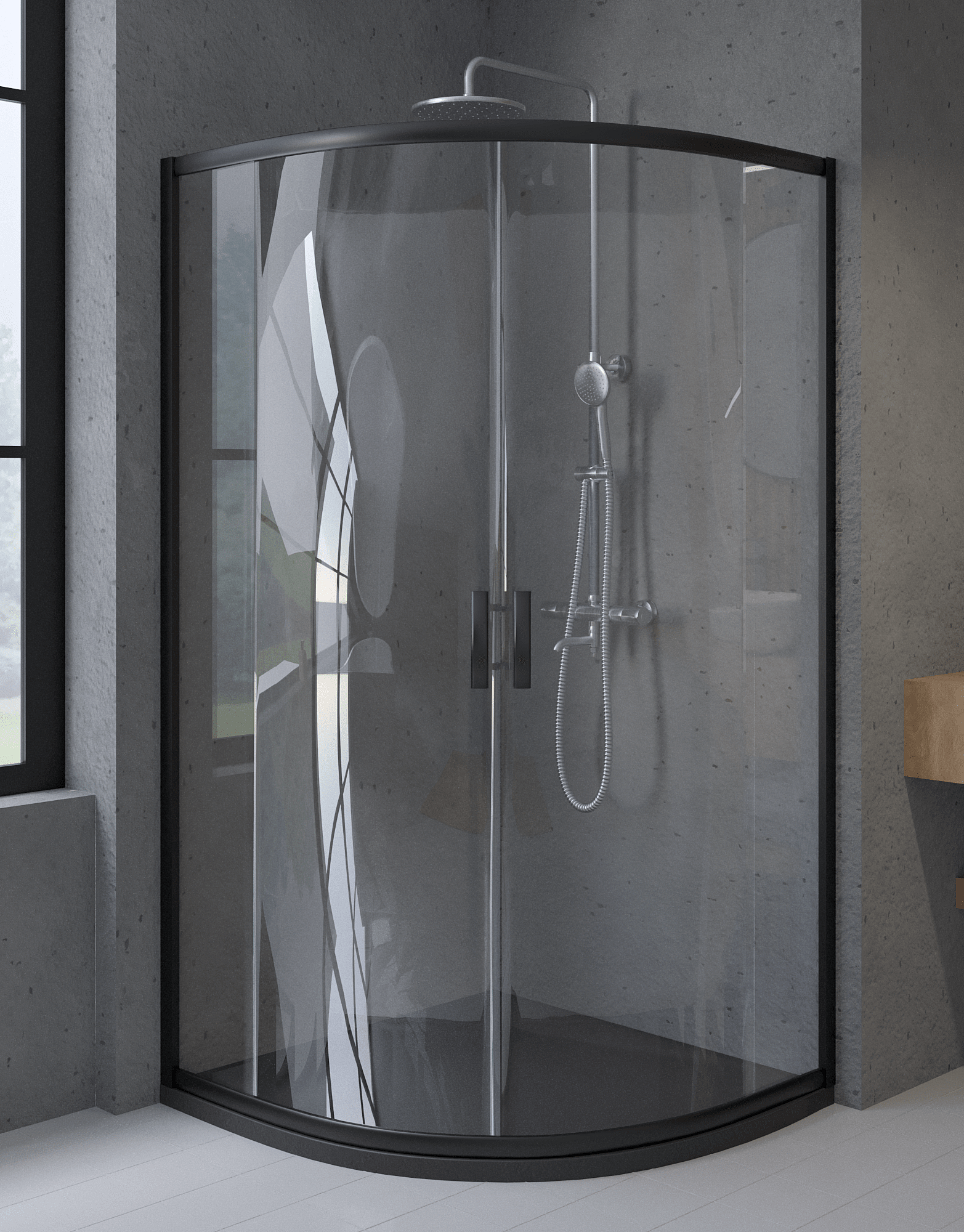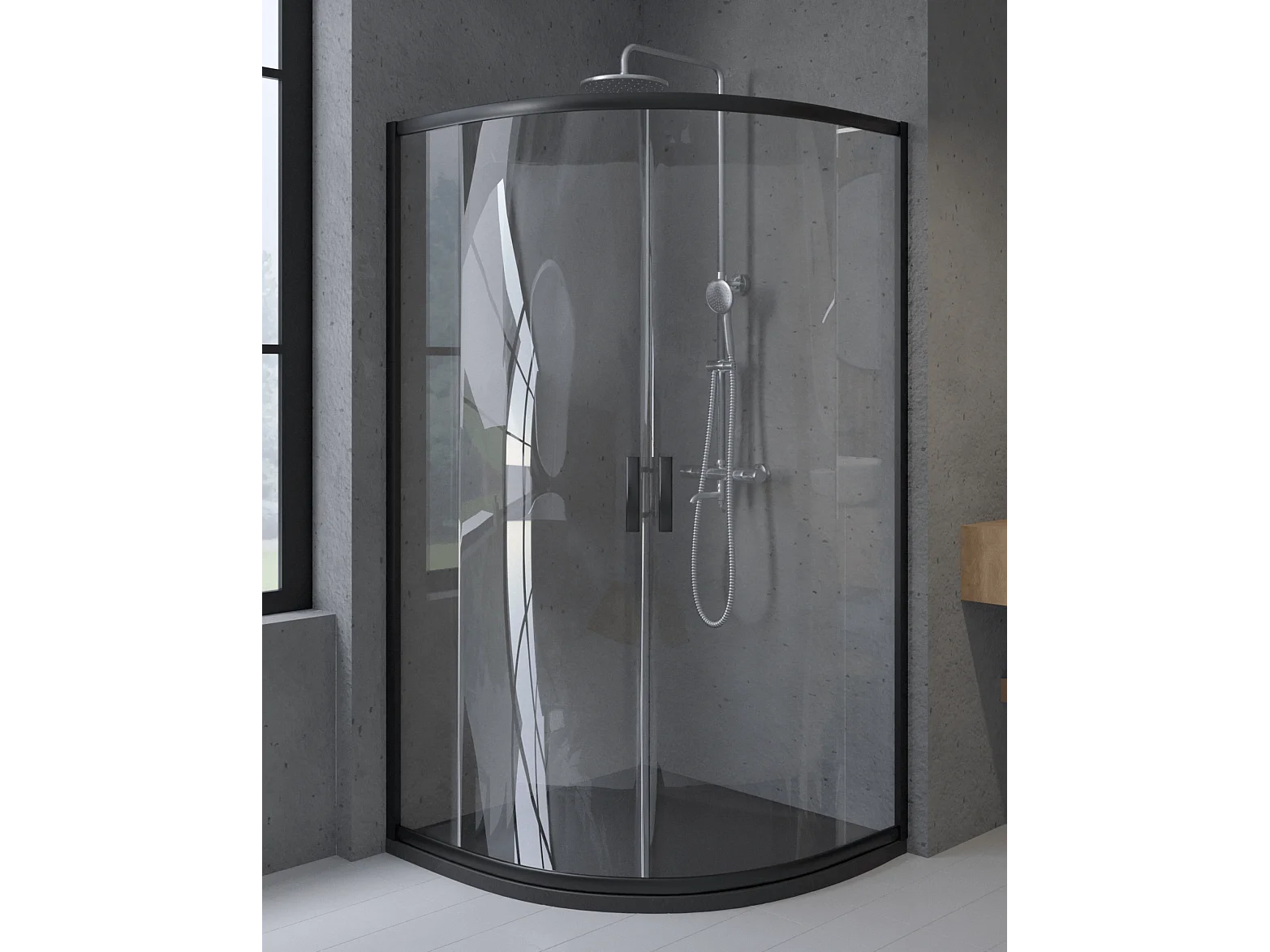 Cabine de douche quart de cercle HELA Noir 80x80 190 cm Nano-Verre Transparent Trempé