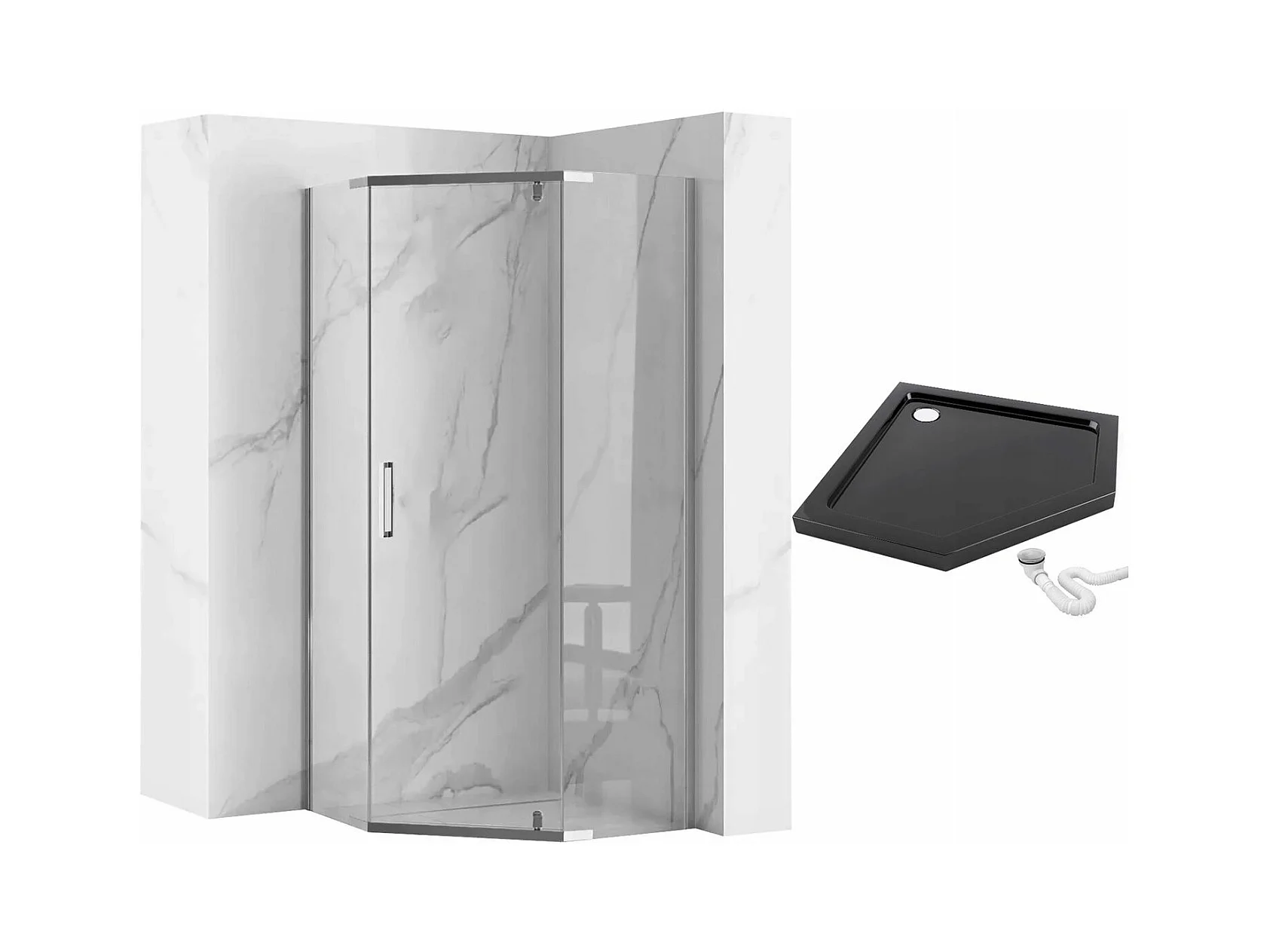 Cabine De Douche Rea Axin 90X90 Chrome + Receveur De Douche Savoy Black