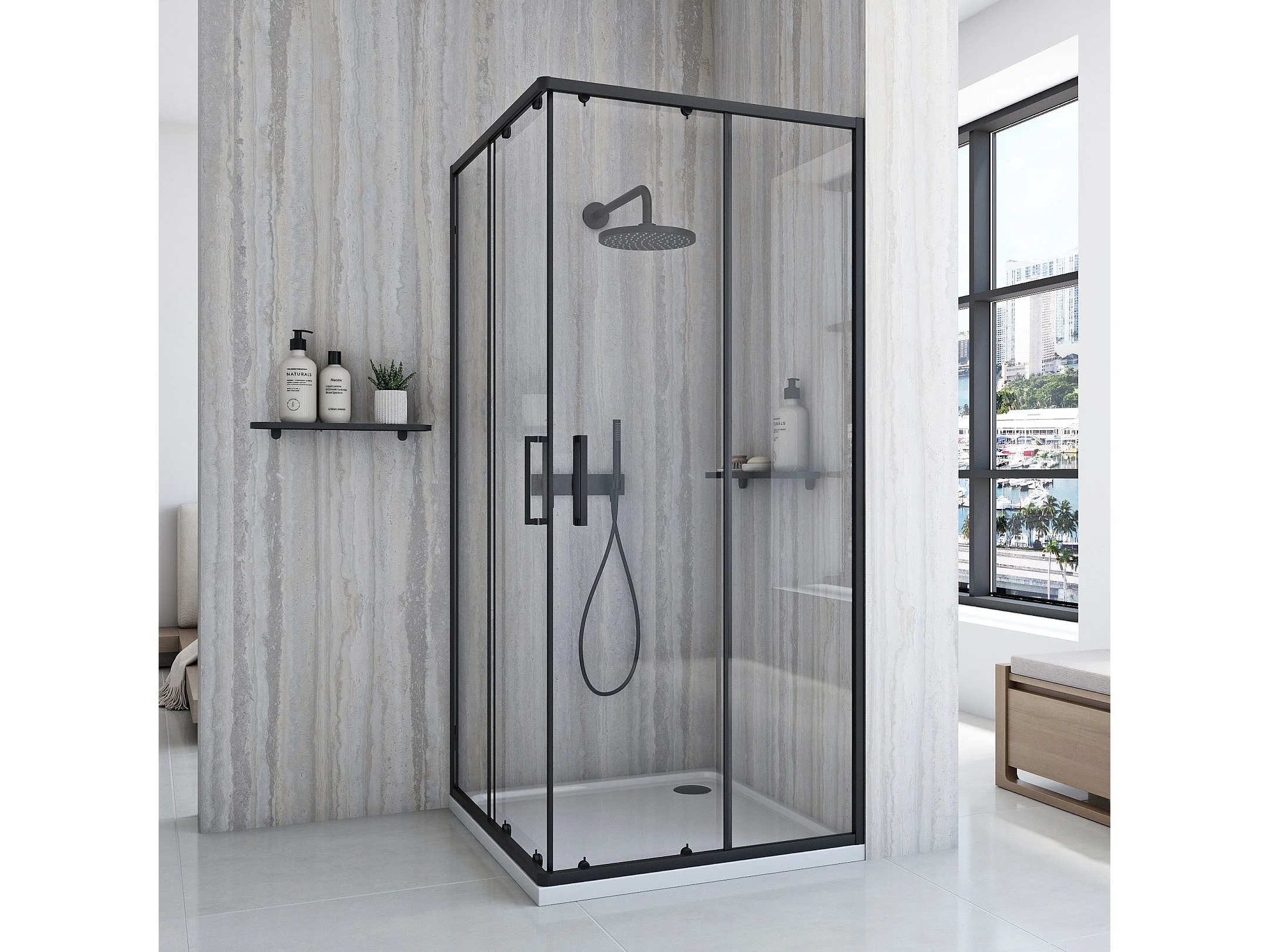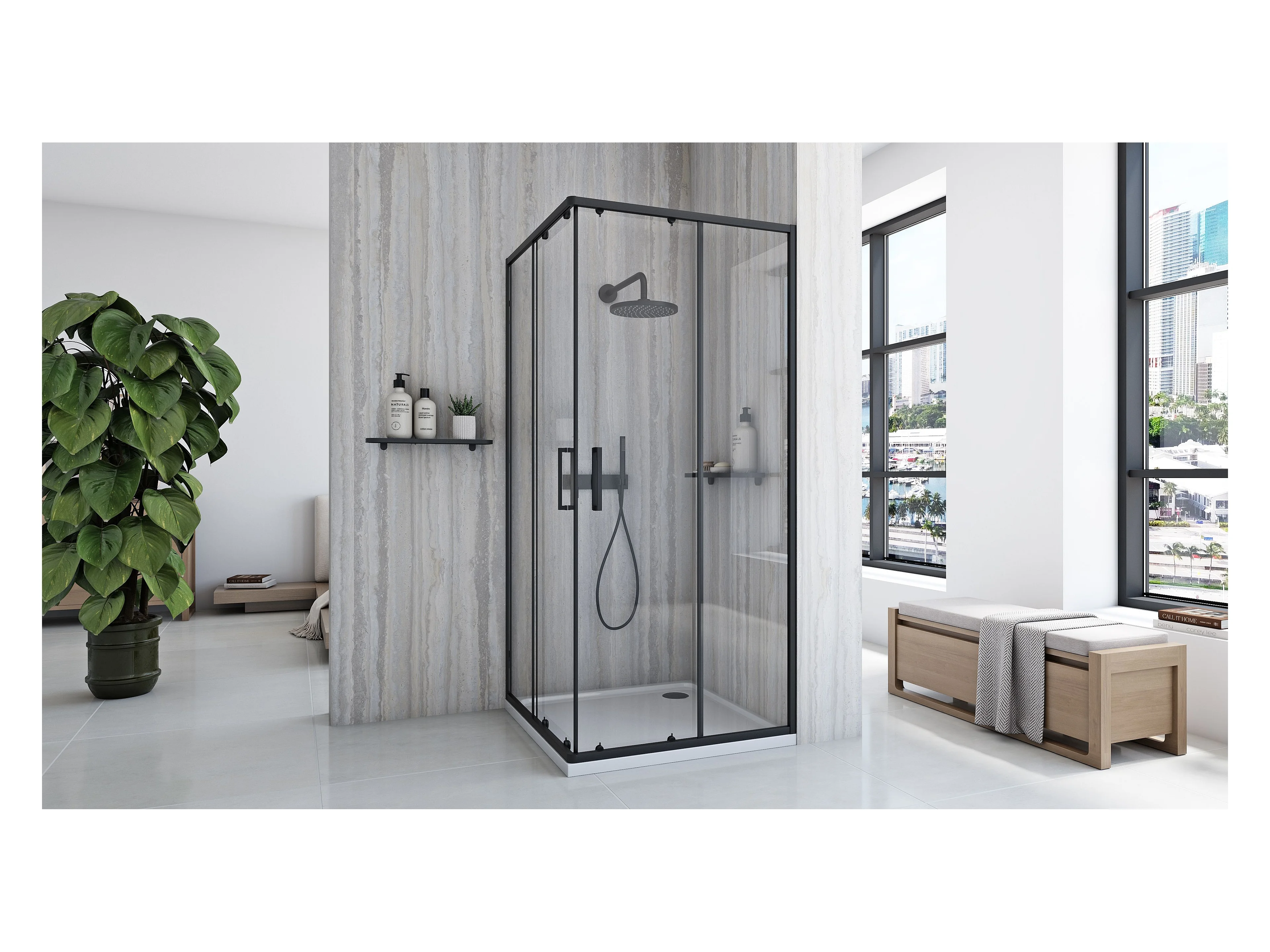 Cabine De Douche Rea City 80X80 Black + Receveur De Douche Savoy Black