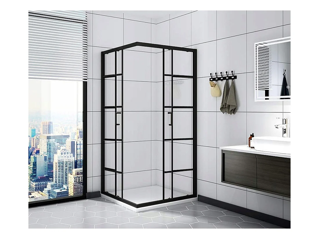 Cabine De Douche Rea Space In 80X100 Black + Receveur De Douche Savoy Black