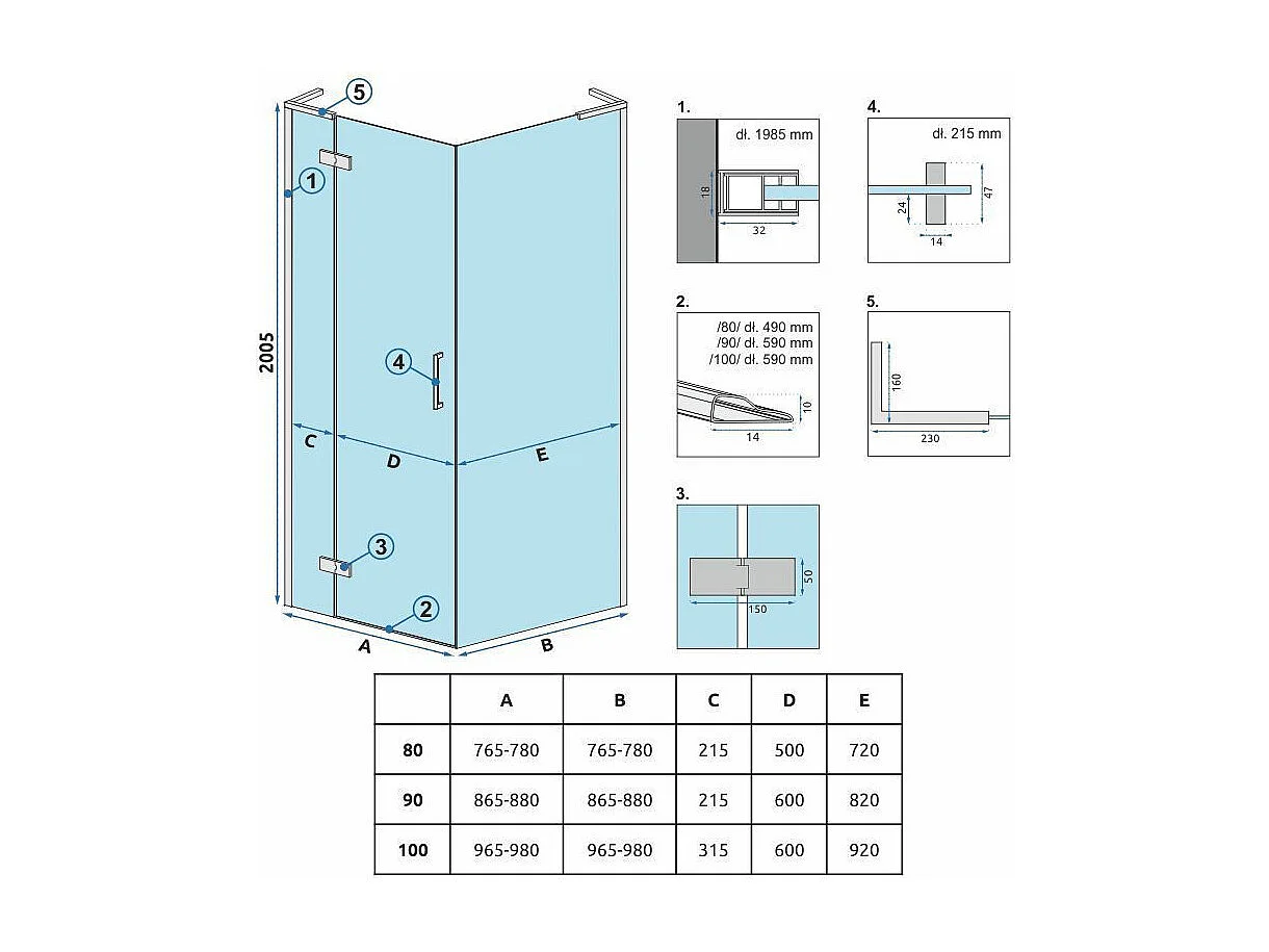 Cabine De Douche Rea Hugo 80X90 Brush Copper