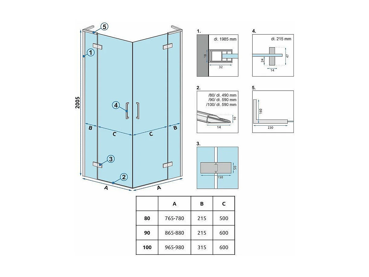 Cabine De Douche Rea Hugo Double 80X90 Brush Copper