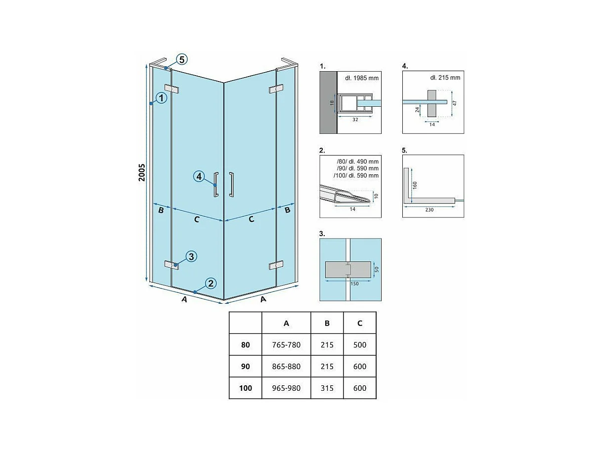 Cabine De Douche Rea Hugo 80X90 Brush Gold