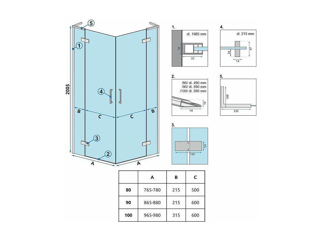 Cabine De Douche Rea Hugo Double 90X100 Brush Copper
