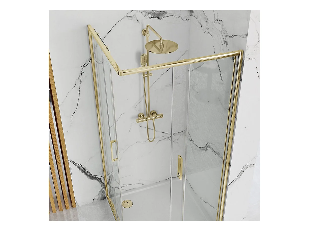Cabine De Douche Rea Punto 80X100 Gold + Receveur De Douche Savoy Black
