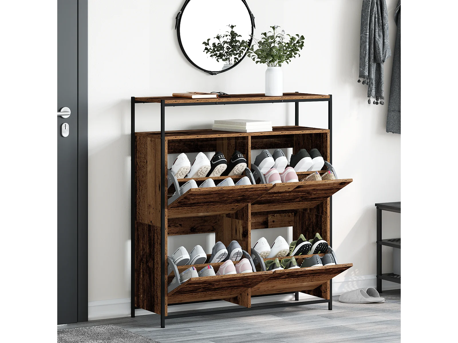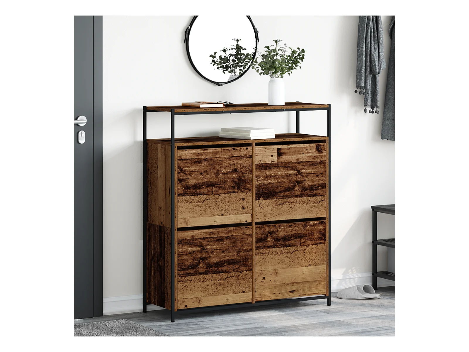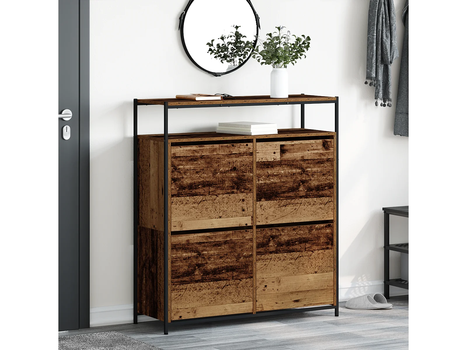 Cabinet à chaussures avec 4 tiroirs à rabat en bois ancien 100x34x112 cm