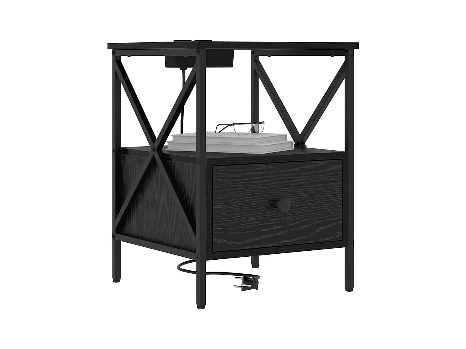Table de nuit Noir Chêne 35x35x55 cm en bois d'ingénierie