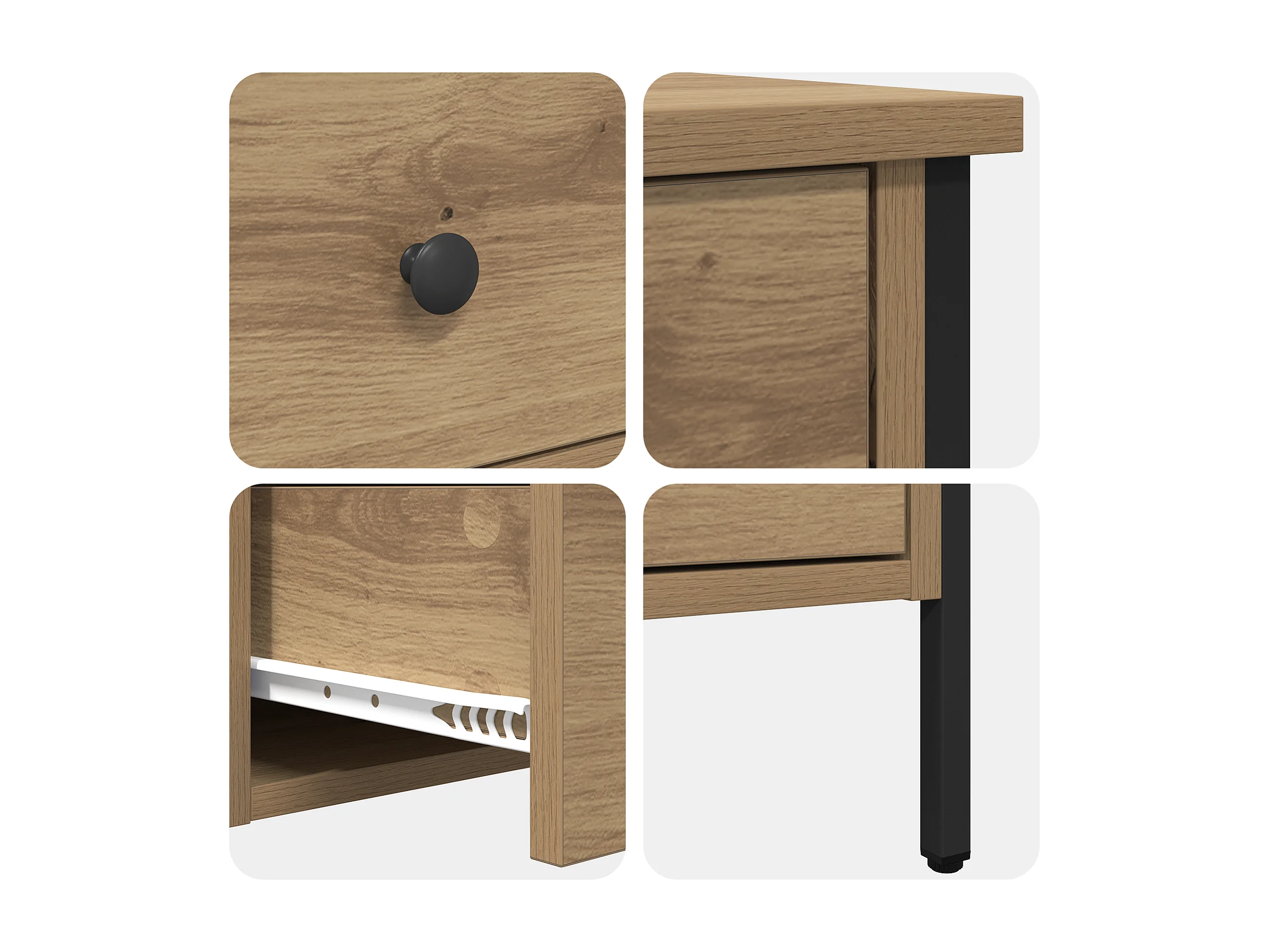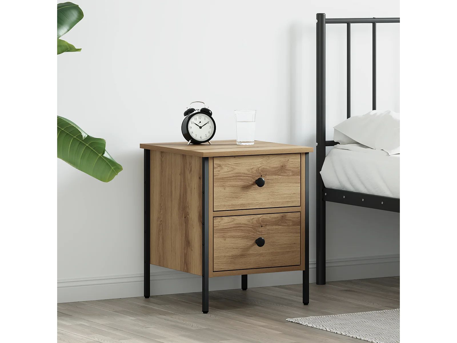 Table de chevet en chêne 40x42x45 cm en bois d'ingénierie