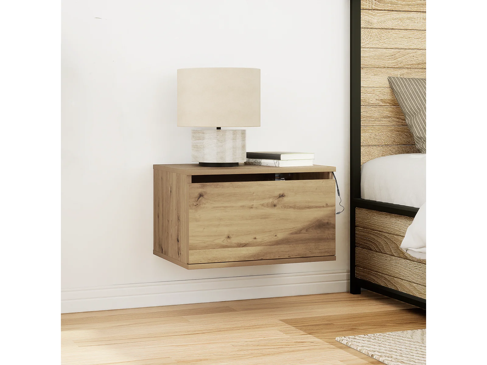 Table de chevet avec éclairage LED monté au mur en bois ancien 50x36x30 cm