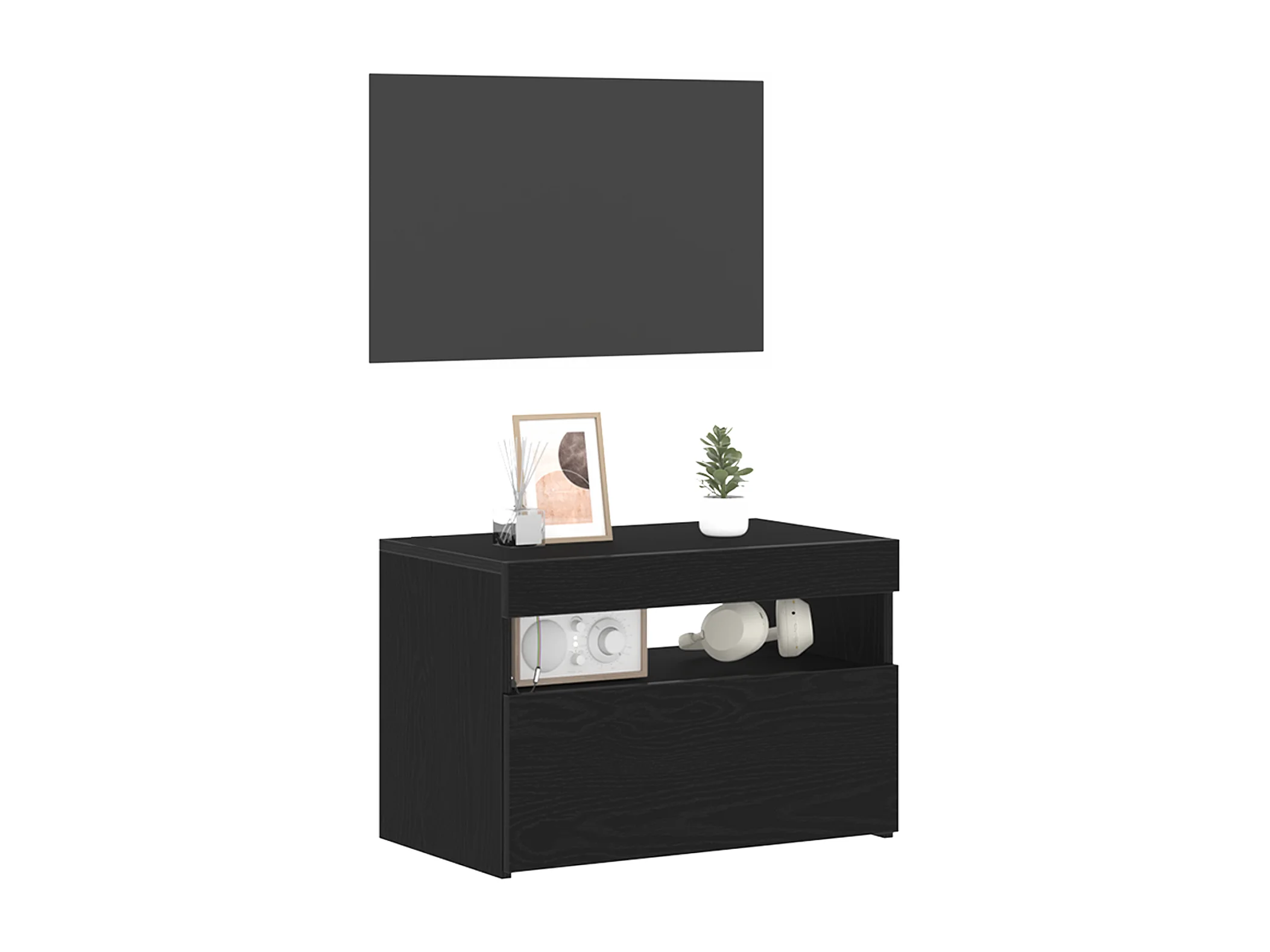 Cabinet de chevet avec lumières LED Chêne noir 60x35x40 cm Bois technique