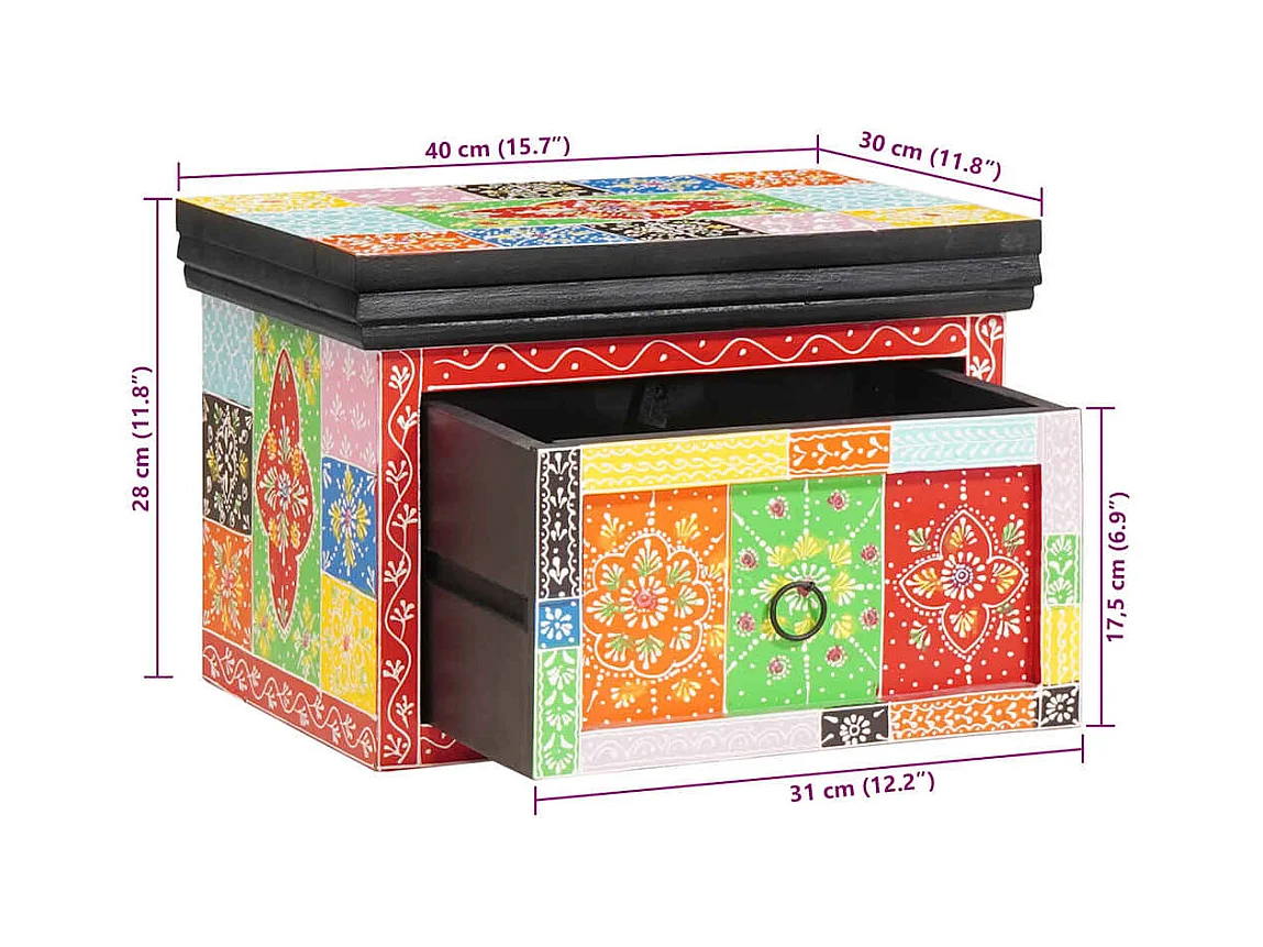 Table de chevet multicolore 40x35x45 cm bois de manguier solide