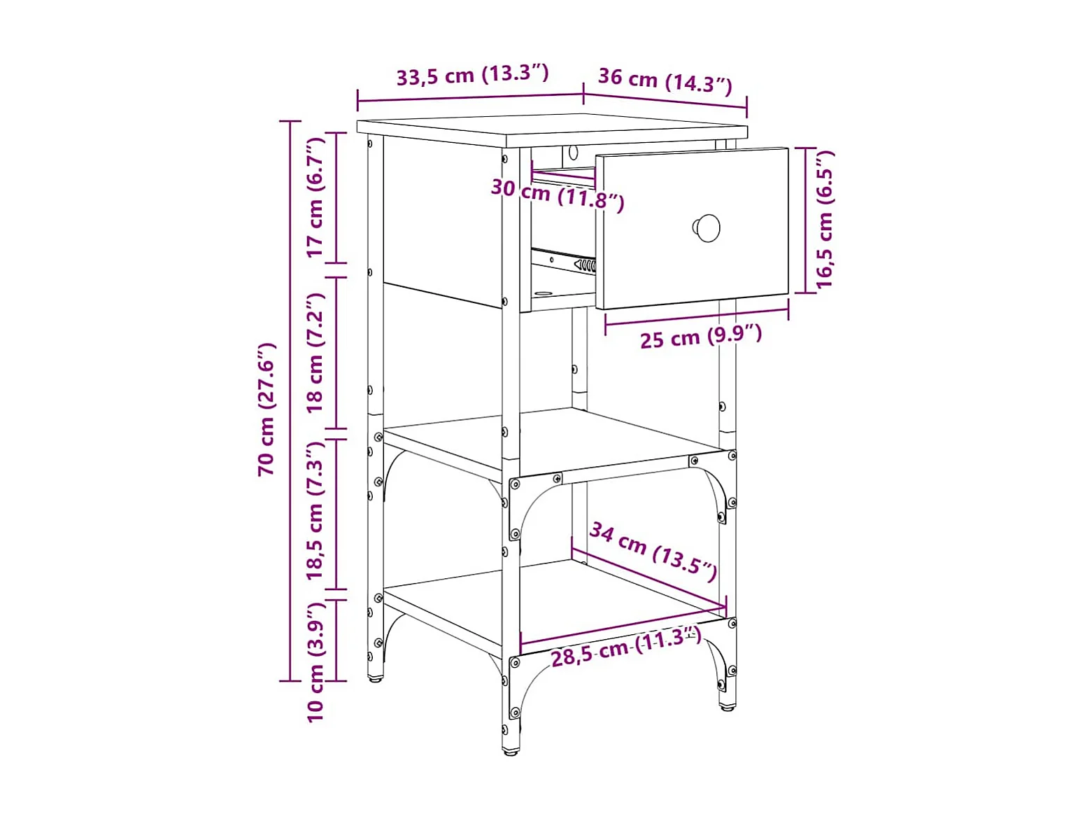 Lot de 2 Tables de chevet chêne sonoma 34x36x70 cm bois ingénierie WVGQ5023