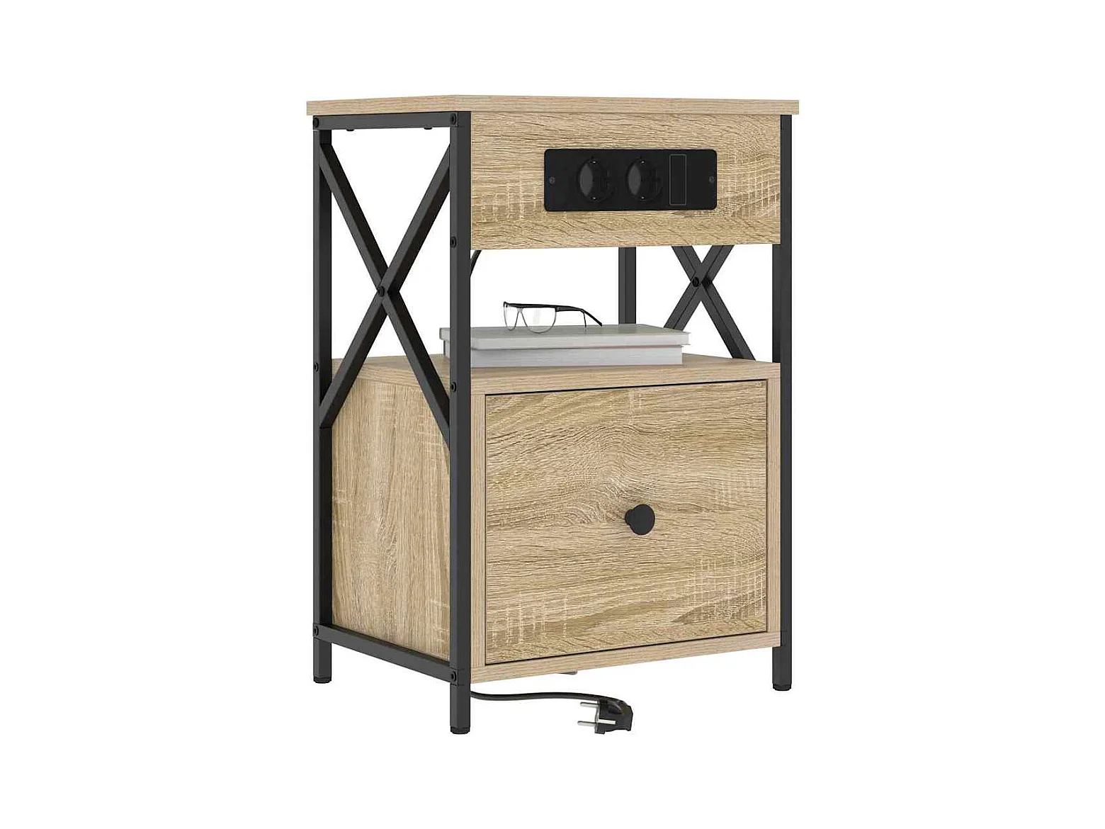 Table de nuit avec station de chargement Chêne sonoma