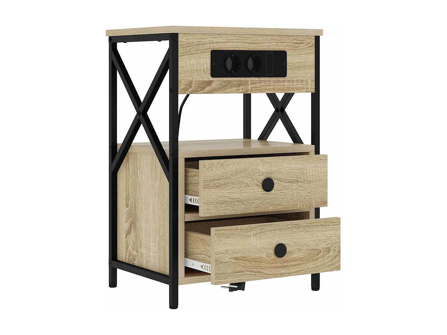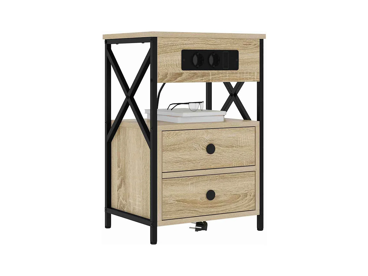 Table de nuit avec station de chargement 2 pcs Chêne sonoma