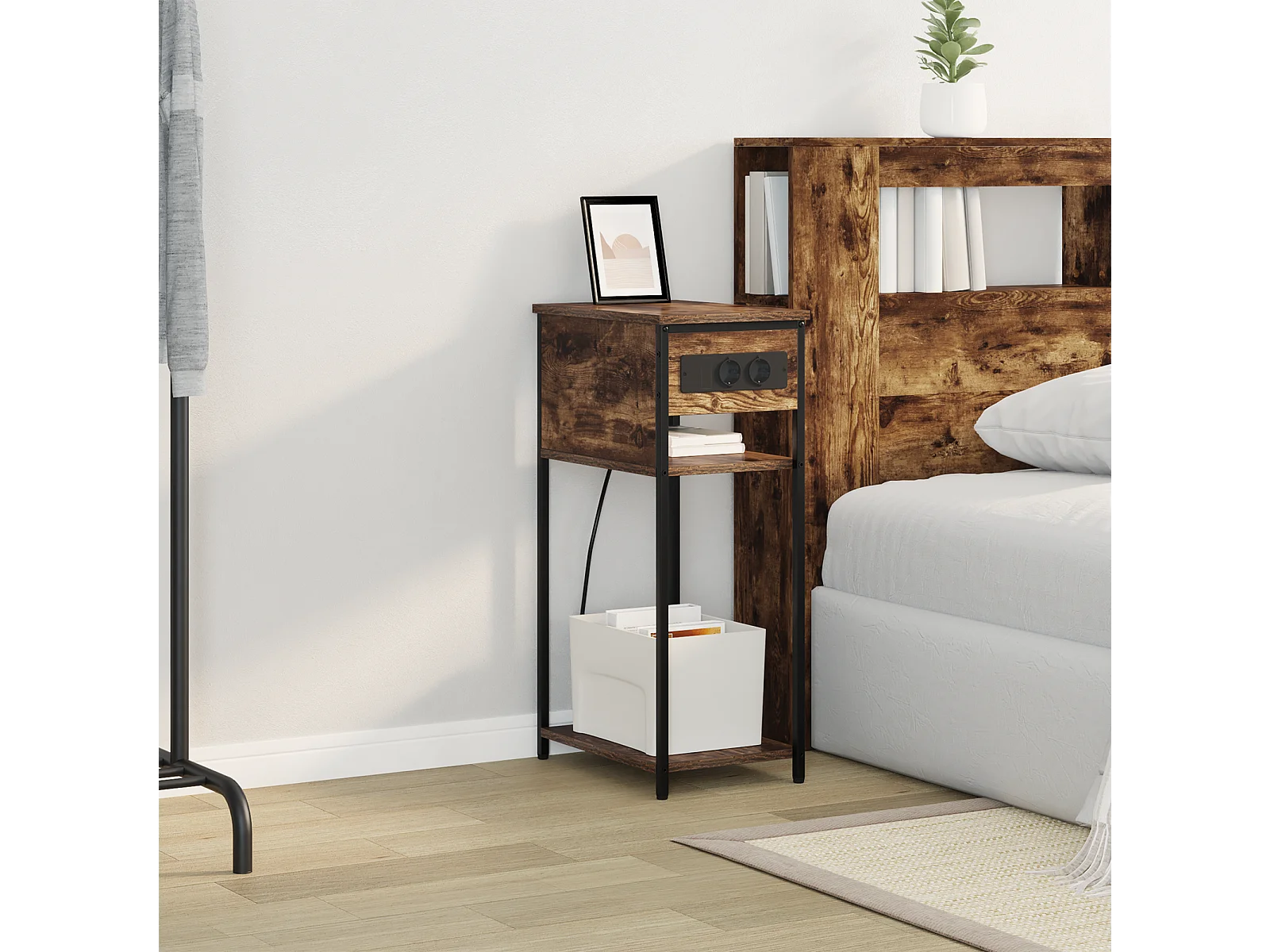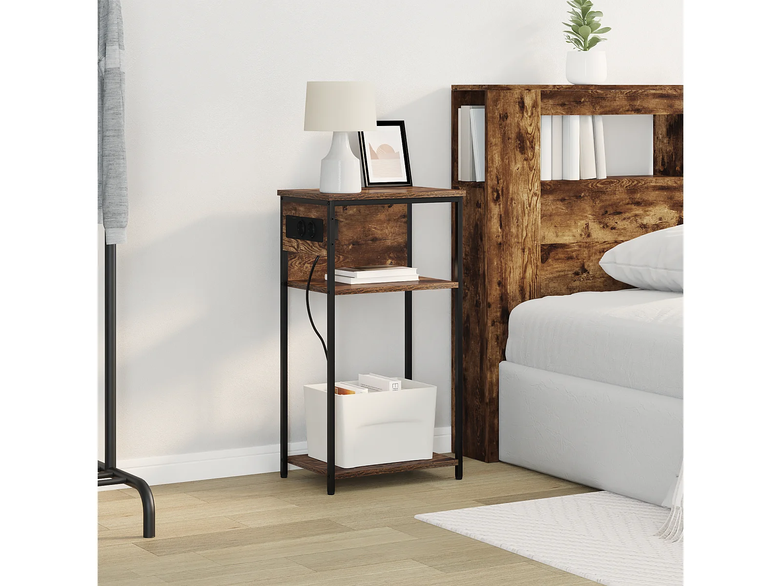 Table de chevet chêne artisanal 41x31x80 cm bois d'ingénierie