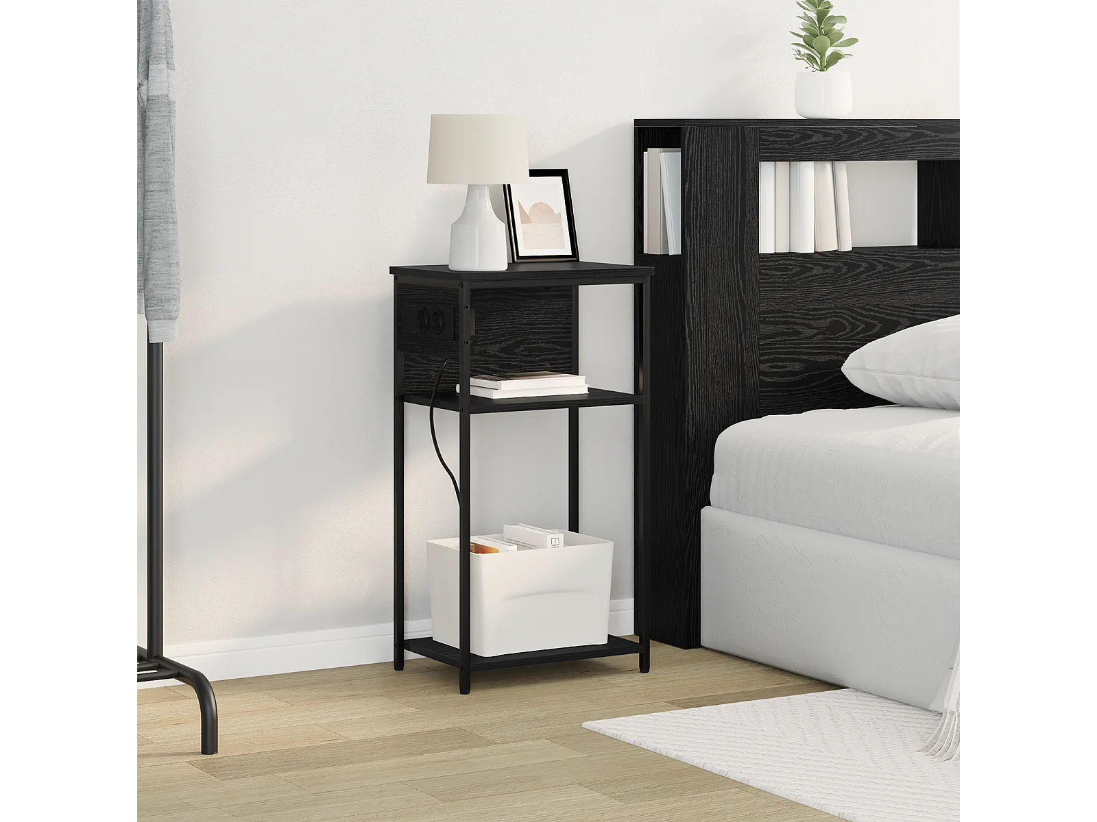 Table de nuit avec station de chargement Chêne noir