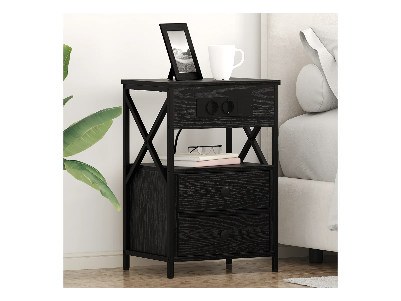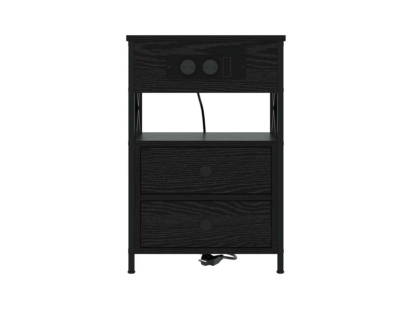 Table de nuit avec station de chargement avec tiroir Chêne noir