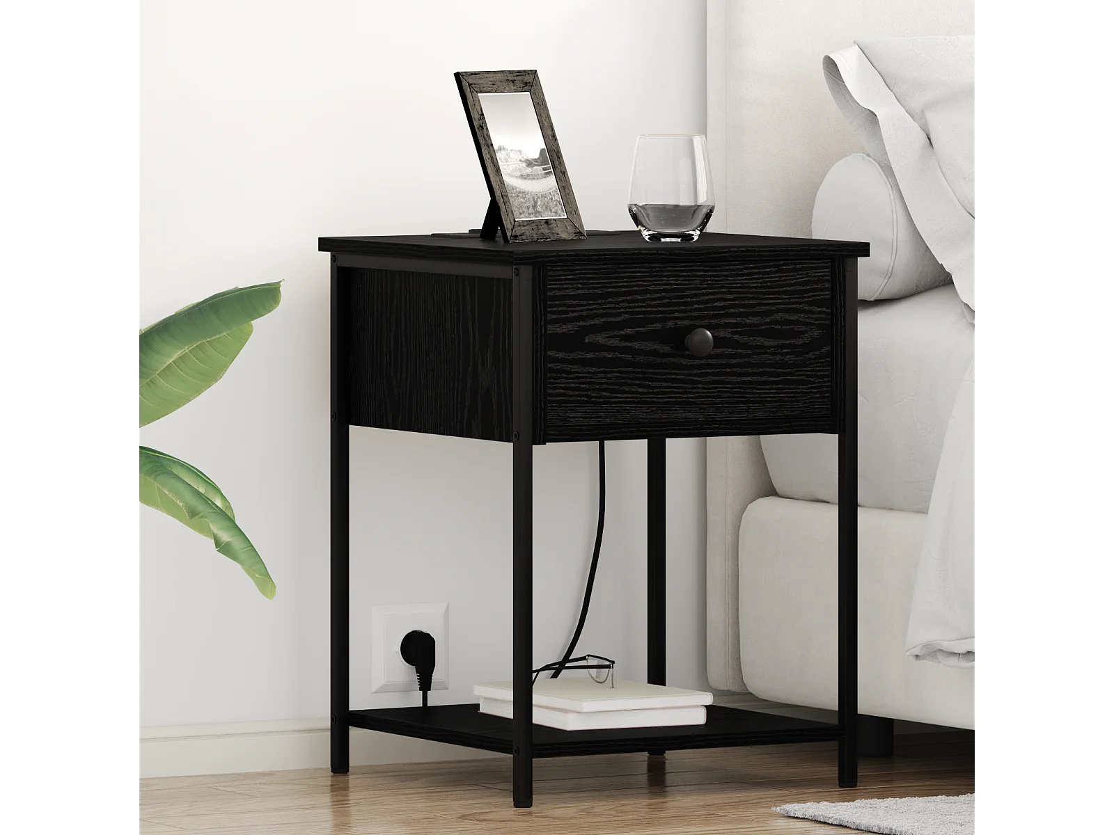 Table de nuit avec station de chargement 2 pcs Chêne noir