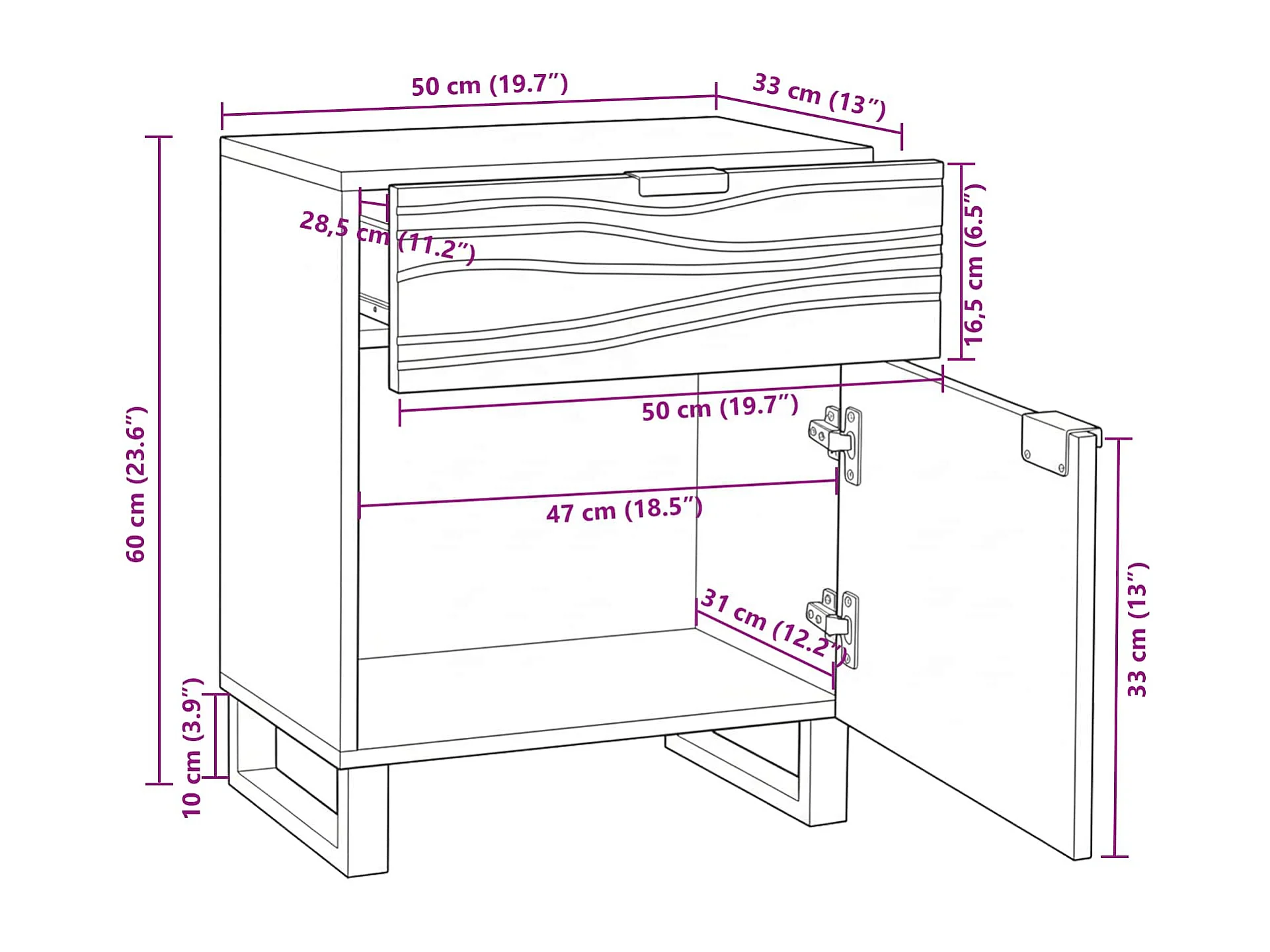 Table de nuit chêne viking 40x38.1x55 eliza