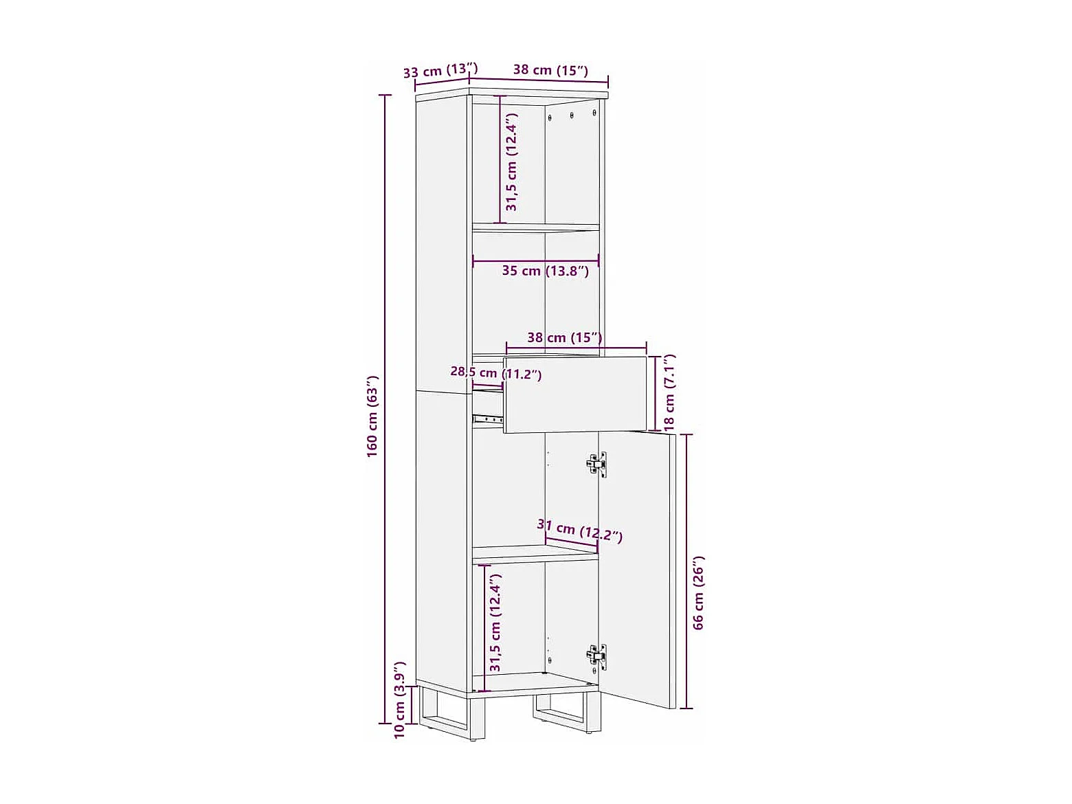 Meuble de Lavabo de Salle de Bain Marron 38 x 33 x 160 cm