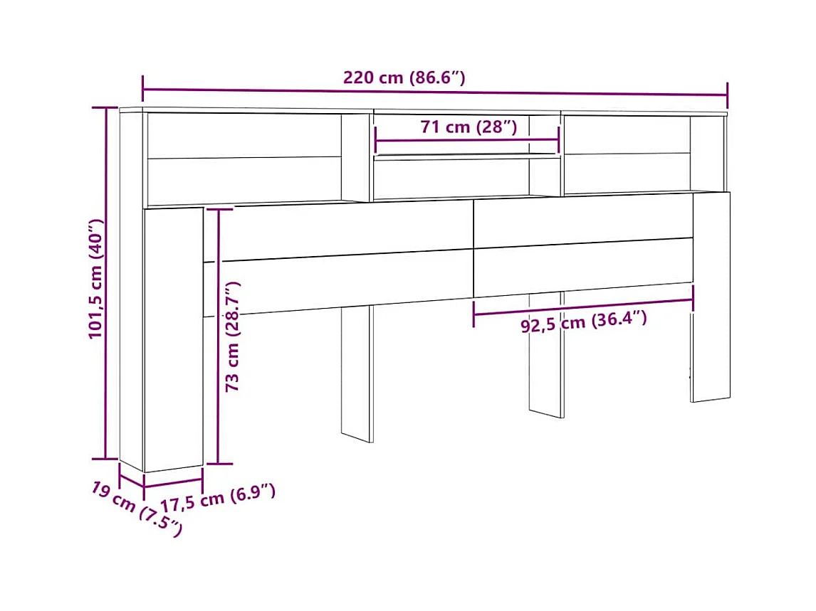 Cabinet de Tête de Lit 220 x 18,5 x 104,5 cm Bois d'ingénierie